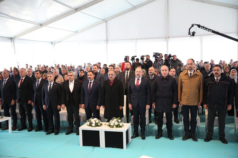 Toplu Konut İdaresi (TOKİ) Başkanı Ömer Bulut ve Emlak Konut Genel Müdürü Cengiz Erdem'in de katıldığı törende, Bakan Özhaseki ve beraberindekiler temel atma butonuna bastı.
