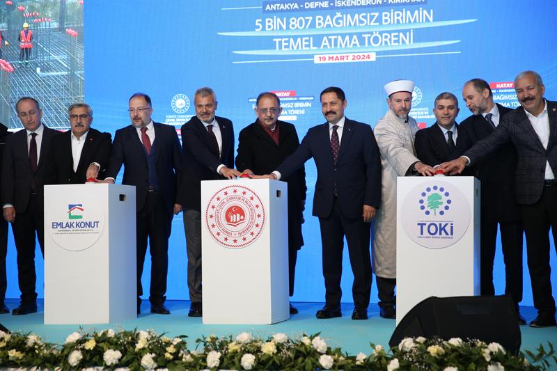 Özhaseki, Akasya Mahallesi 500 Konutlar Rezerv Alanı'nda düzenlenen, Antakya, Defne, İskenderun ve Kırıkhan ilçelerinde 5 bin 807 bağımsız birimin toplu temel atma töreninde yaptığı konuşmada, bugün atacakları temellerin ve yapacakları açılışların Hatay'a hayırlı olmasını diledi.