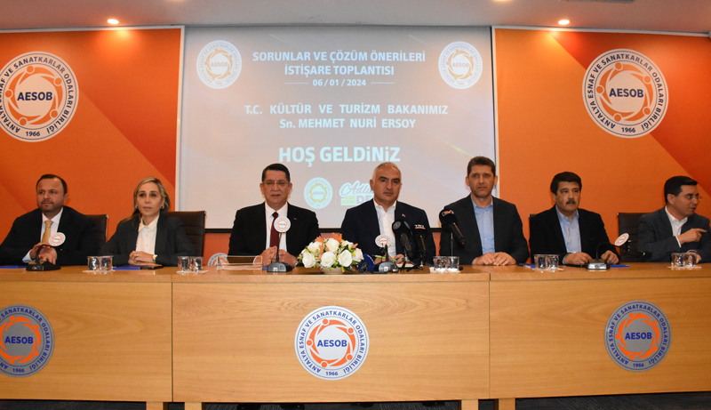 Bakan Ersoy, Antalya Esnaf Sanatkarlar Odaları Birliğince (AESOB) düzenlenen "Sorunlar ve Çözüm Önerileri İstişare Toplantısı"nda yaptığı konuşmada, Antalya'da 2023'te rekor sayıda ziyaretçi ağırlandığını bildirdi.