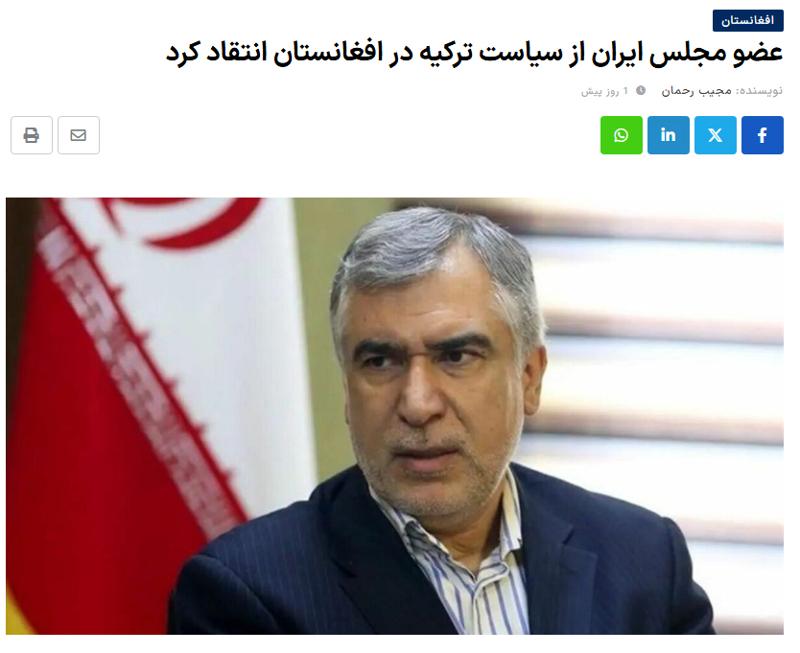 Türkiye'yi Afganistan'da İran'ın çıkarlarına zarar veren politikalar izlemekle suçlayan İran milletvekili, Tahran ve Kabil arasındaki gerginliğe dikkat çekti.
