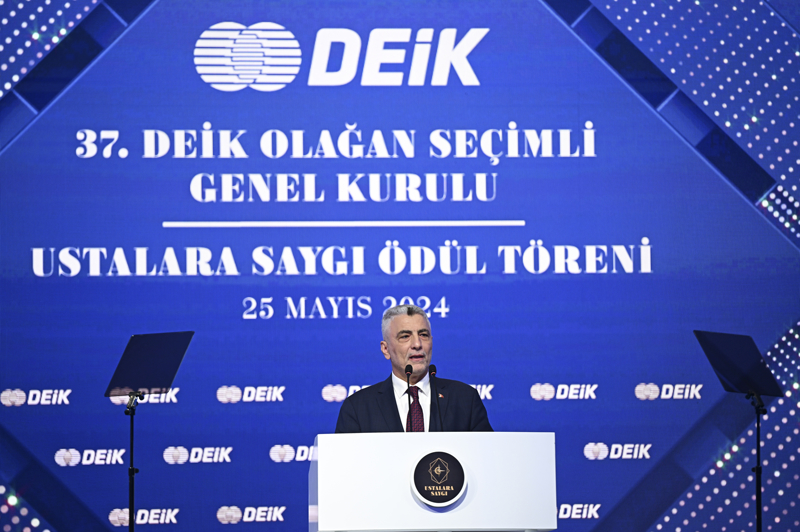 Dış Ekonomik İlişkiler Kurulu (DEİK) Genel Kurulu ve Ustalara Saygı Ödül Töreni, İstanbul Lütfi Kırdar Uluslararası Kongre ve Sergi Sarayı'nda Cumhurbaşkanı Recep Tayyip Erdoğan'ın katılımıyla gerçekleştirildi.