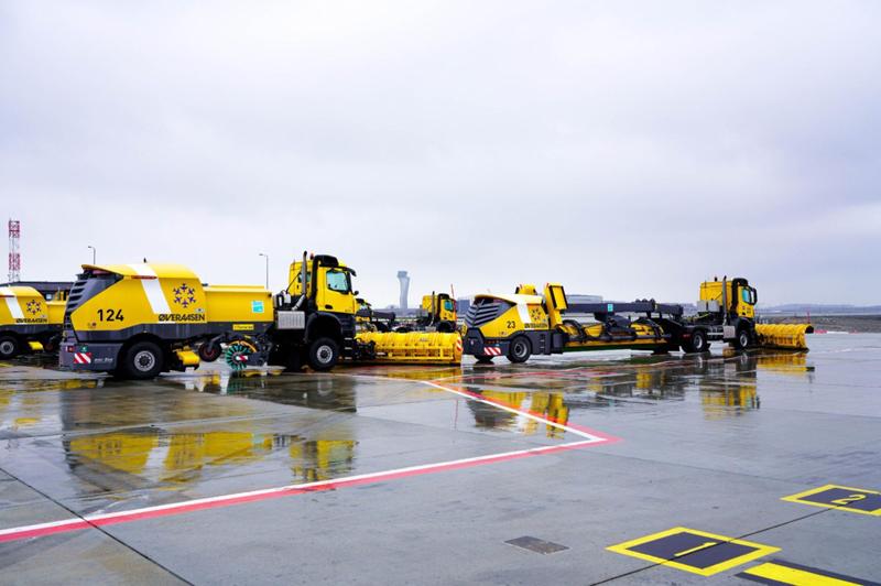 İstanbul Havalimanı filosunda mobil komuta merkezi, kar bıçaklı kamyonlar, kompakt karla mücadele araçları, kar rotatifleri, pist frenleme ölçüm araçları ve cihazları, de-icing kamyonları, çok fonksiyonlu kar traktörleri ve çeşitli yükleyiciler bulunuyor. Ayrıca pist, taksiyolu, asfalt ve beton kaplı apron alanları, servis yolları ve çevre yolları dahil olmak üzere 12 milyon metrekareyi aşan alan, karla mücadele kapsamında belirlenen bölgeler arasında yer alıyor. Bu alanlarda kullanılmak üzere 1575 ton sıvı buz çözücü (potasyum asetat) ve 760 ton katı buz çözücü malzeme depolarda hazır tutuluyor.