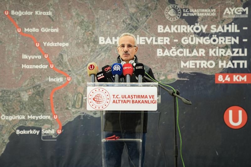 Ulaştırma ve Altyapı Bakanı Abdulkadir Uraloğlu, yarın açılışı Cumhurbaşkanı Recep Tayyip Erdoğan'ın katılımıyla gerçekleştirilecek Bakırköy Sahil-Bahçelievler-Güngören- Bağcılar Kirazlı Metro Hattı'nda incelemelerde bulanarak Bakırköy Sahil İstasyonu'nda hatta ilişkin açıklama yaptı.