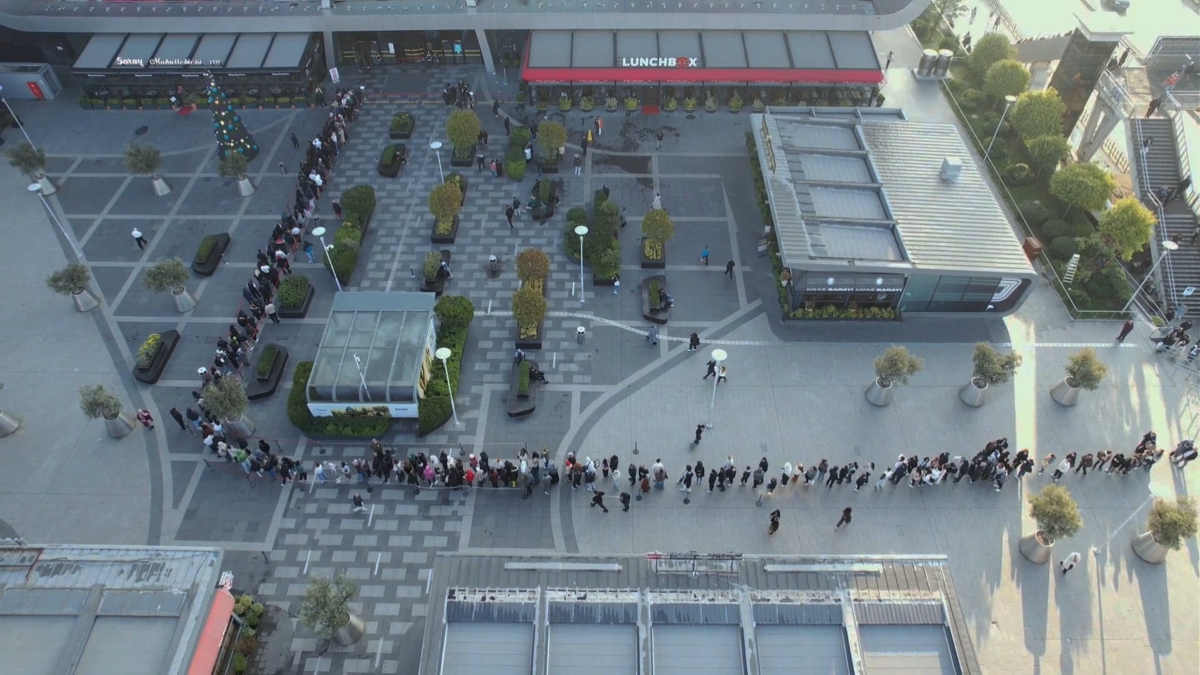 Kuyruğun en başında yer alan Arzu Evin isimli kadın, "Sıra bekliyoruz. İnternetten alışveriş yapamadık, ürünler tükenmişti. İnşallah beklediğimize değer. Sabah 06.30'dan beri bekliyoruz. İstediğimiz ürünleri buluruz" dedi.