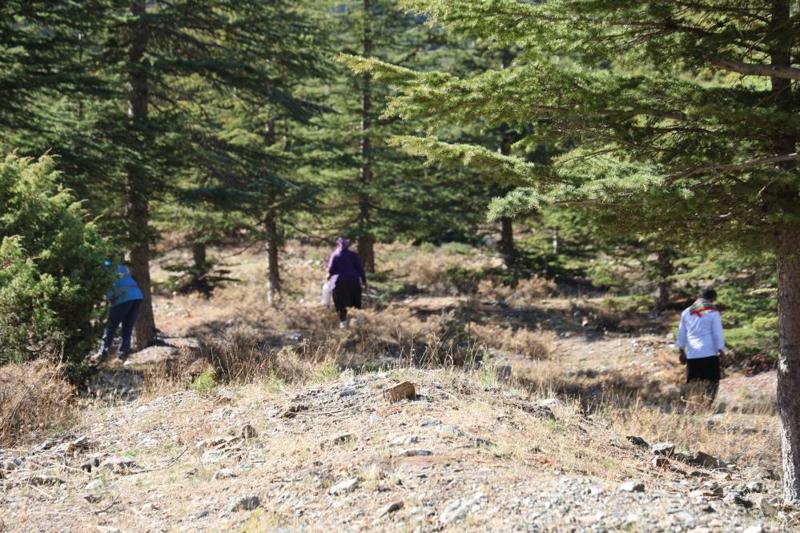 Sabah ezanıyla birlikte ormana gidip öğle namazına kadar mantar topladığını anlatan 85 yaşındaki Sanem Gündoğdu, "Dağdan topluyorum, satıyorum, evime katkı oluyor" derken Raziye Gündoğdu da sedir ağaçlarının gölgesinde mantar arayarak elde ettiği gelirle ev ekonomisine destek verdiğini ifade etti.