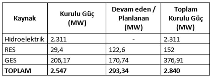 TOPLAM 2.840 MW'LİK KURULU GÜÇ