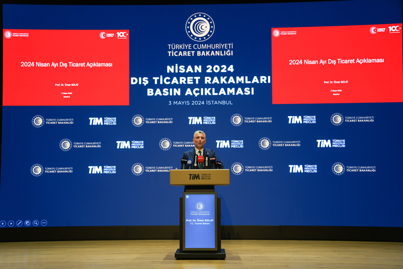 Ticaret Bakanı Ömer Bolat, yıllık bazda ihracatın ilk dört ay sonunda,12 aylık toplamda 257,6 milyar dolara yükseldiğini, ithalatın da yıllıklandırılmış olarak 350,7 milyar dolara indirilmesinin başarıldığını aktardı.