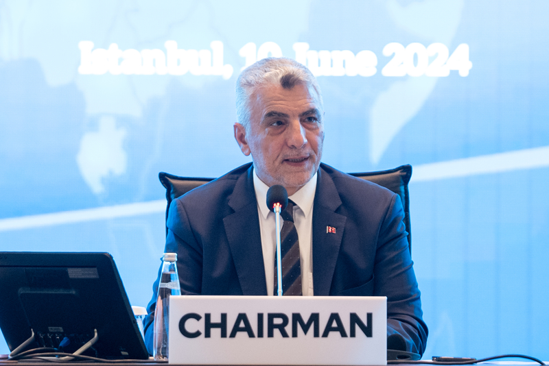 "Malumunuz İİT Üye Ülkeleri Arasında Tercihli Ticaret Sistemi, kısaca TPS-OIC, 1 Temmuz 2022 itibarıyla yani 2 yıl önce uygulamaya konuldu. Bu çok önemli ve olumlu bir adımdı ancak İİT içinde üye ülkeler arasındaki ticareti yüzde 25'in ötesine taşımak istiyorsak, sadece 13 ülkenin taraf olduğu, ürün sayısının sınırlı olduğu bir anlaşma ile bunu yapamayız. Taraf ülke sayısını artırmak en basit çözüm ancak gerçeklerle de yüzleşmek lazım. 20 yıldır yer yıl İSEDAK toplantılarında üye ülkeler, TPS-OIC Anlaşmalarına taraf olmaya davet ediliyor ve geldiğimiz nokta malumunuz. Demek ki var olan Anlaşmalar üye ülkeler için yeterince cazip değil."