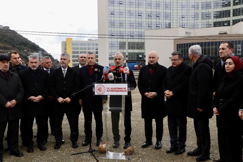 Dolgu üzerine inşa edilen Trabzon Şehir Hastanesi'nde herhangi bir risk öngörüsü olmadığına dikkat çeken Bakan Uraloğlu, "Zaman zaman bazı spekülasyonlarda yapılıyor. 4 bin 800 adet fore kazık ve 762 adette sismik izolatör burada tesis edilmiştir. Dolayısıyla burada mühendislik olarak herhangi bir risk öngörüsü yoktur bunun altını özellikle çizmek isterim. Trabzon Şehir Hastanesi'nin yapılması elbette önemli ama mutlaka oraya doğru kanallardan da ulaşılması gerekir. Bunun için iki tane kavşağı uygulamaya geçirdik. Kuzeyden bir kuşaklama yolunun yine karayolları vasıtasıyla çalışmalarını yürütüyoruz. Herhangi bir risk oluşmaması için DSİ tarafından kuşaklama kanalı bitmek üzere yine onu yürütüyoruz. TEDAŞ ve Büyükşehir Belediye Başkanlığımızın yürüttüğü çalışmalar var" diye konuştu.