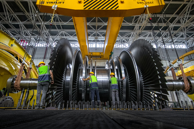 Toplam ağırlığı 255 ton olan rotorun montajı, ekipman imalat tesisini temsilen bir mühendisin gözetiminde gerçekleştirildi. Türbin kurulumunun bir sonraki aşamasında uzmanlar, tüm parçaların doğru hizalanmasını sağlayacak ve bu süreçte ekipman parçaları birbirine uygun şekilde konumlandırılacak. Ardından uzmanlar, türbini çark cihazına yerleştirecek ve montajın doğruluğunu, hizalanmanın uygunluğunu ve işletim sistemlerinin hidrolik testler için hazır olup olmadığını kontrol edecekler.