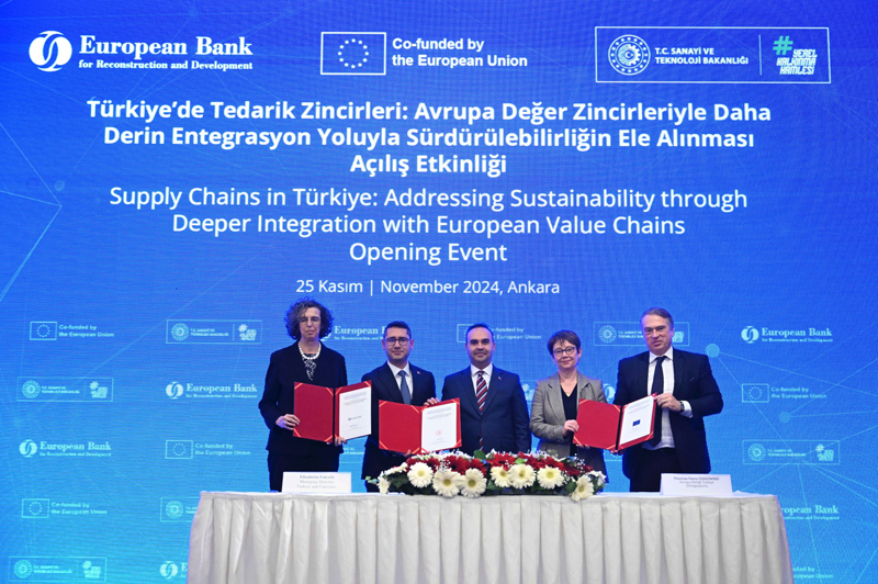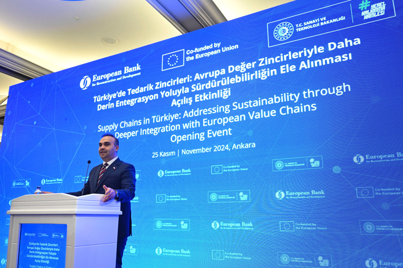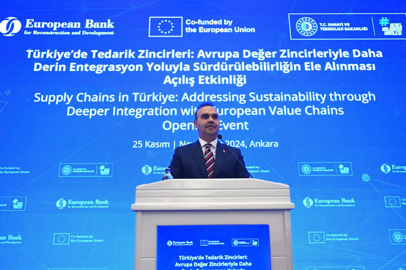 "15 yılı aşkın süredir rekabetçilik ve yenilik sektöründe AB Katılım Öncesi Yardım Aracı (IPA) fonlarının yönetiminde program otoritesi olarak faaliyet gösteren Bakanlığımız, birçok alanda büyük bir uyum arz eden AB politikaları ile ulusal stratejilerimiz çerçevesinde 800 milyon avroluk bütçeyle 90'a yakın projeyi hayata geçirdi. Türk firmalarının global değer zincirlerine katılım oranını iyileştirmeyi, AB ile Türkiye arasındaki ticaret bağlantılarını derinleştirmeyi, firmaların çevre, sosyal ve yönetişim (ESG) prensiplerini benimsemelerini hedefleyen çok yönlü bir destek programını devreye alıyoruz. Program sayesinde hem büyük ölçekli işletmelerimizin hem de onların tedarik zincirinde yer alan KOBİ'lerimizin, AB'nin sürdürülebilirlik standartlarını benimsemelerini sağlamak adına tedarik zinciri finansal hacmini artırıyoruz. AB'nin 17 milyon avroluk hibe desteğiyle gerçekleştirdiği bu projede EBRD ve diğer partner bankaların katılımıyla tedarik zinciri finansmanında kullanılmak üzere 170 milyon avroluk kaynağın oluşmasını mümkün kıldık."