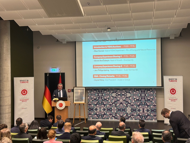 Cumhurbaşkanlığı Yatırım Ofisi, Türkiye'nin Berlin Büyükelçiliği'nde "Avrupalı ortaklar için yenilenebilir büyüme" temasıyla Türkiye'nin hızla büyüyen yenilenebilir enerji pazarına yönelik konferans düzenledi.