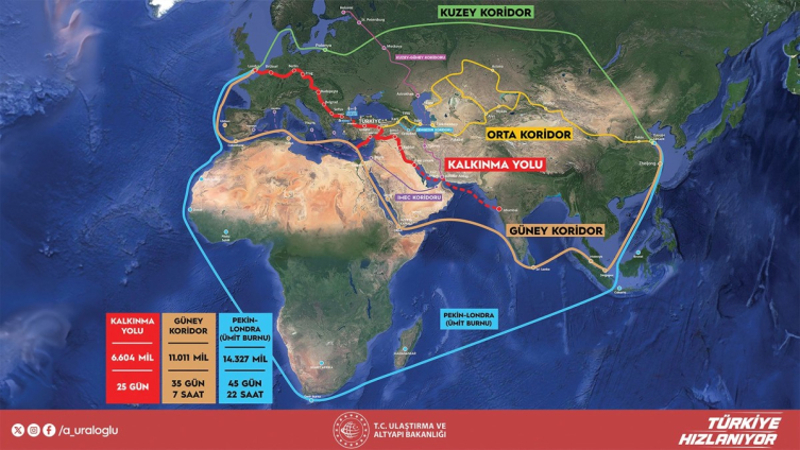 Bu bölge çatışma ve gerilim nedeniyle dalgalanmaları da yaşıyor. Bu da ortak çıkar ve menfaatleri kapsayacak projelere odaklanma çabasını gerekli kılıyor. Kalkınma Yolu, yolun her bir tarafında yol üzerindeki ticareti güçlendirecek yeni sanayi kentleri kurulmasına olanak sağlayacak. Bu yılın sonlarında Faw Limanı'nın ilk rıhtımlarının açılışını yapacağız ve Kalkınma Yolu koridoru üzerinden ilk ürün akışı başlayacak. Tüm ekonomik göstergeler ve fizibilite çalışmaları bu koridorun mevcut rotalar arasında en uygun maliyetli ve en hızlı koridor olduğuna işaret ediyor. Projenin bir alternatif olduğunu iddia etmiyoruz, ancak bölgesel ve uluslararası ticaretin gerçekten de Kalkınma Yolu'na ihtiyacı var. Bu proje, örtüşen çıkarları ve ekonomik sürdürülebilirlik faktörlerini birbirine bağlıyor ve güçlendiriyor.
