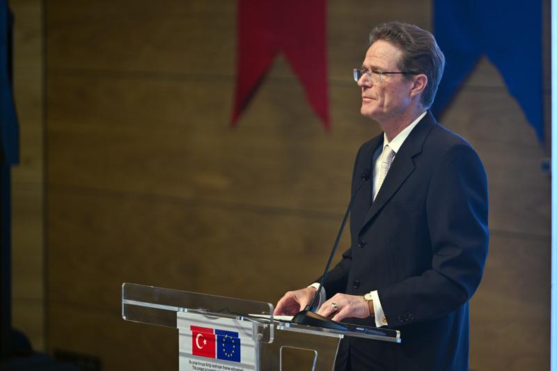 Burada düzenlenen 'IPARD-III 81 İlde' programında konuşan Büyükelçi Nikolaus Meyer-Landrut, IPARD-III programının sunduğu imkanlardan bütün illerin yararlanmasını çok uzun zamandır hedeflediklerini belirterek, "Ben daha sürdürülebilir, daha dirençli tarım ve gıda sektörünün oluşturulması suretiyle afet sonrası toparlanma döneminde IPARD-III'ün kırsal alanlarda çok önemli anahtar rol oynayacağını düşünüyorum. Avrupa Birliği olarak depremin yaşandığı ilk anlardan itibaren Türkiye halkının yanında olduk. Çok çeşitli araçlardan Türkiye'ye 1 milyar avronun harekete geçirilmesi çalışmasında bulunduk. Bu desteklere devam edeceğimizin sözünü veriyoruz" ifadelerini kullandı.