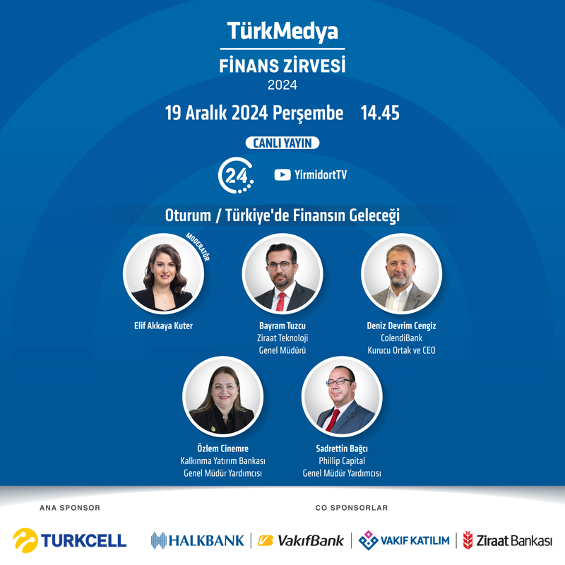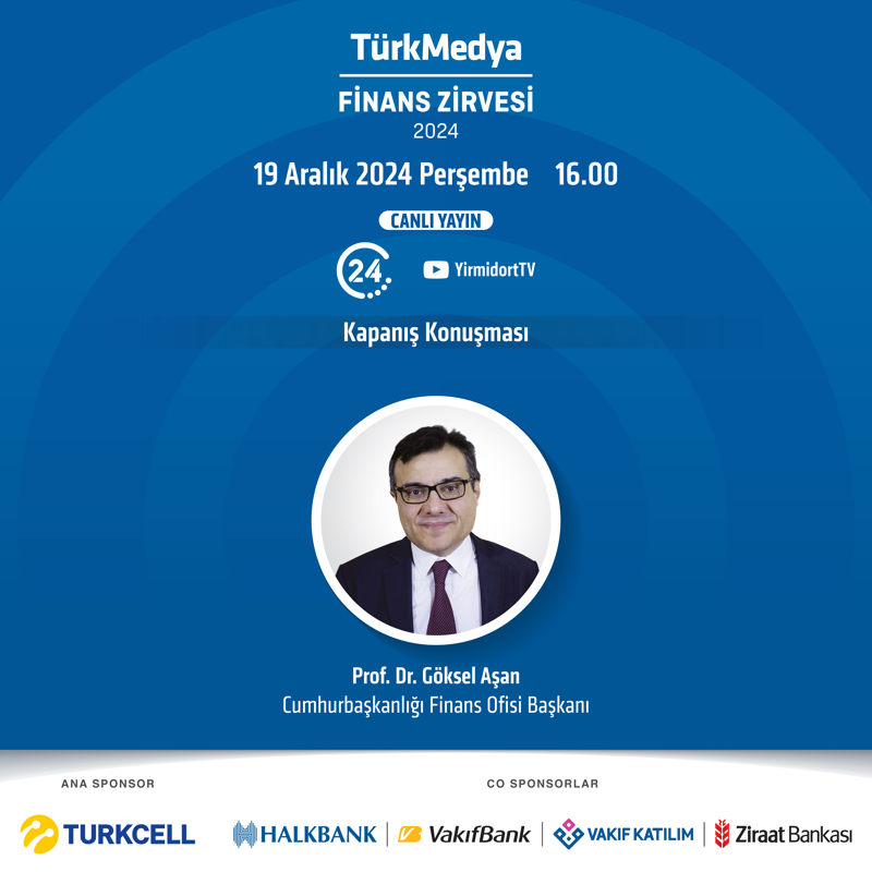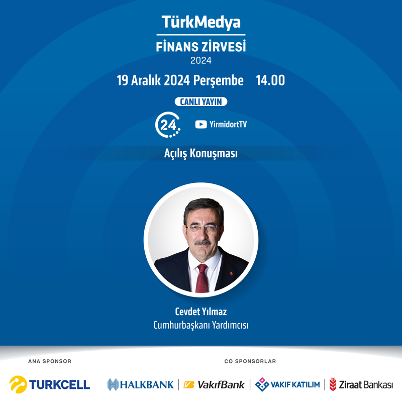 TürkMedya Finans Zirvesi; 19 Aralık Perşembe günü saat 13.30 itibariyle 24 TV ve 24 TV YouTube kanalında canlı yayında sizlerle!