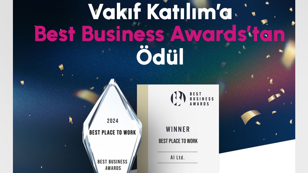 Vakıf Katılım, insan kaynakları alanında hayata geçirdiği projeleriyle sektöre yön vermeye devam ediyor. Çalışan odaklı uygulamalarını dijital dönüşüm yaklaşımıyla şekillendiren Vakıf Katılım, İngiltere'nin en prestijli ödüllerinden olan ve bu sene 10. kez düzenlenen Best Business Awards'ta, 'Best Place to Work' ödülüne layık görüldü.