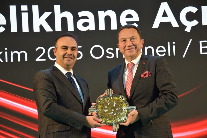 Konuşmanın ardından Hasçelik Yönetim Kurulu Başkanı Adnan Naci Faydasıçok, Bakan Kacır'a hediye takdim etti.