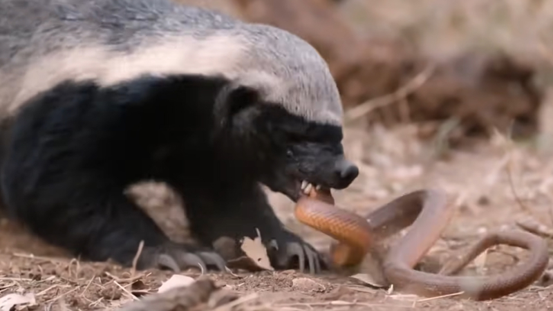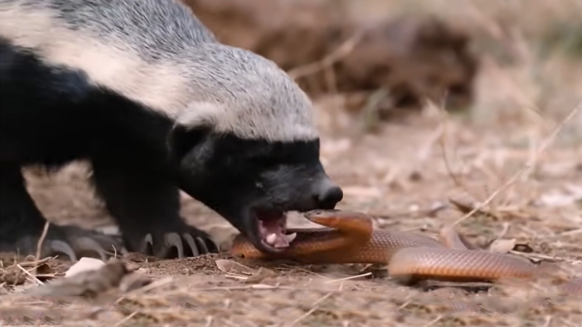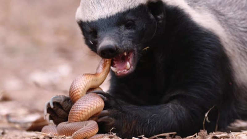 Yılanlar, bal porsuklarının günlük öğünlerinin bir parçası. İnsanlar ve diğer hayvanlar için ölümcül olan kobra yılanları bile bal porsukları için yalnızca birer av.