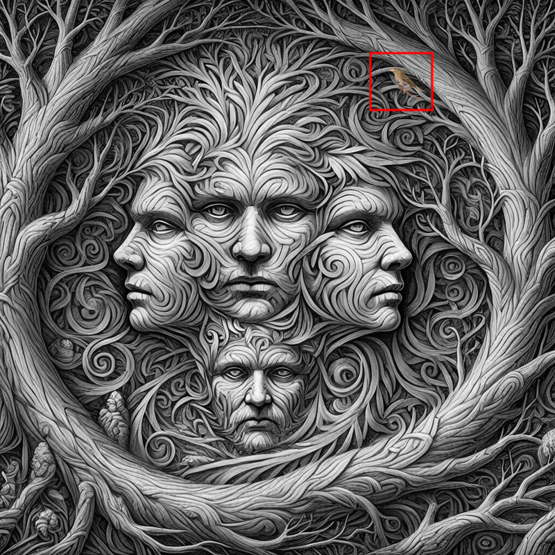 Zeka ve yüksek dikkat becerisi gerektirebilen bu optik illüzyon testi, sarmaşık şeklindeki ağaç dalları görseline istinaden oluşturuldu. Üstelik gizli kuşun dallarla aynı renkte olması, çözüme ulaşmayı zorlaştırıyor. Bu nedenle bulunması hem dikkat hem de zeka gerektirebiliyor.
