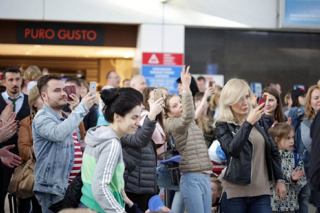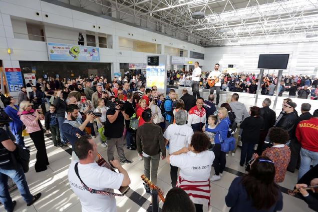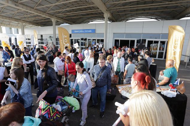 Terminalin bagaj alım salonunda opera sanatçılarının seslendirdiği aryaları dinleyen turistler, çıkış kapısında da DJ performansları, dans ve animasyon gösterileri ile karşılandı