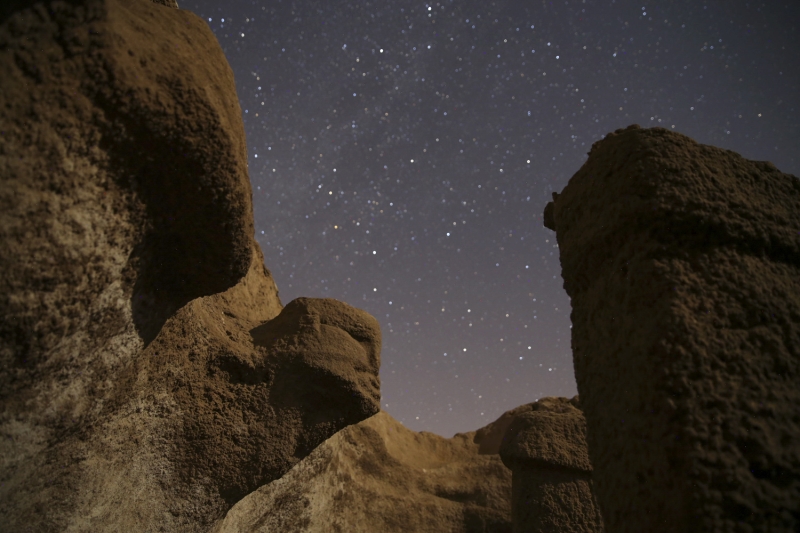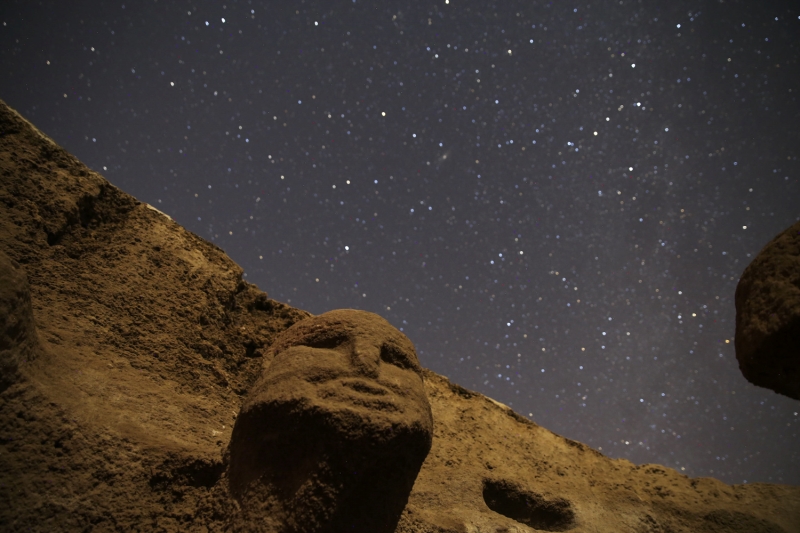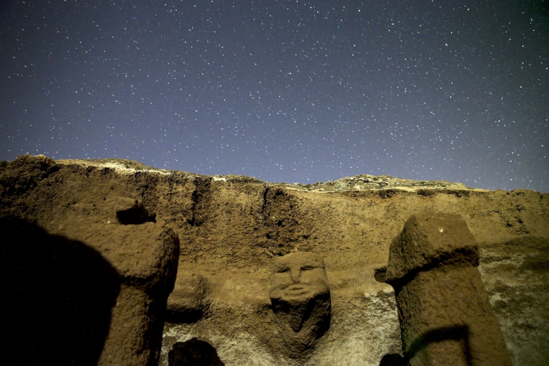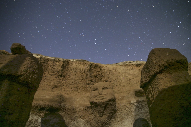 Ören yerindeki heykeller, dikilitaşlar yıldızlar altında güzel görüntü oluşturdu.