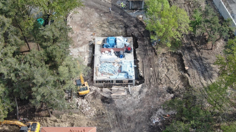 Hastanede yapılan çalışmalar havadan da görüntülendi.