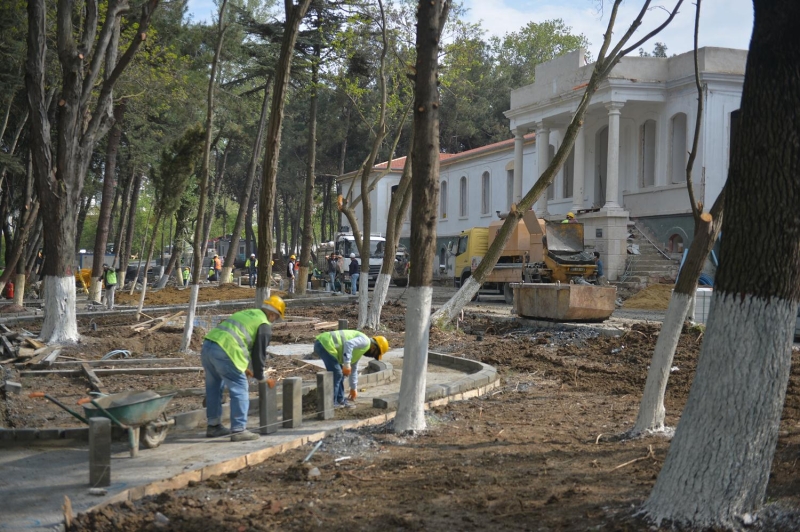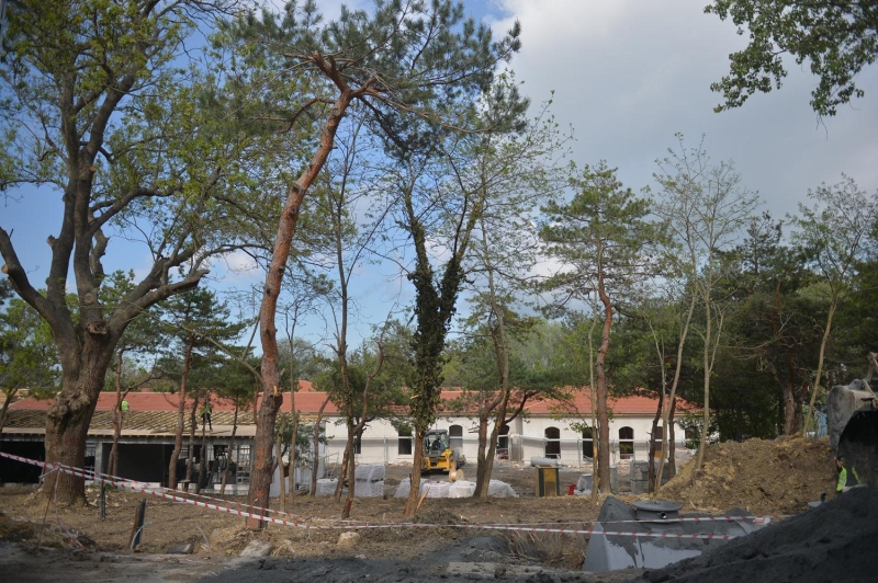 Tarihi hastanenin bahçesinde de peyzaj çalışmaları devam ediyor.