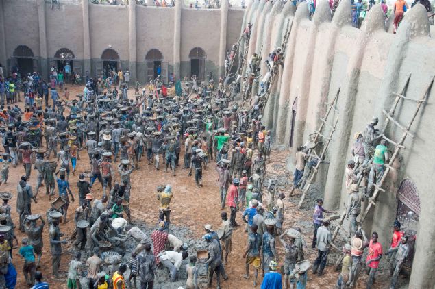 UNESCO'nun Dünya Tarihi Mirası Listesi'ndeki Mali'nin Cenne kentinde bulunan Ulu Cami, her yıl binlerce kişi tarafından çamurla kaplanıyor. Çocuk ve gençlerin nehir yataklarından topladığı çamurlar, kaplarla taşınarak duvarlara sıvayacak ustalara götürülüyor. 13. yy'dan beridir zamana meydan okuyan ve Dünya'nın topraktan yapılan en büyük yapısı ünvanına sahip Ulu Cami, her yıl 'Çamur Bayramı'nda' halk tarafından onarılıyor. Kaplarla nehir yataklarına koşan genç ve çocuklar, ön cepheyi güneş doğmadan tamamlayabilmek için zamanla yarışıyorlar.