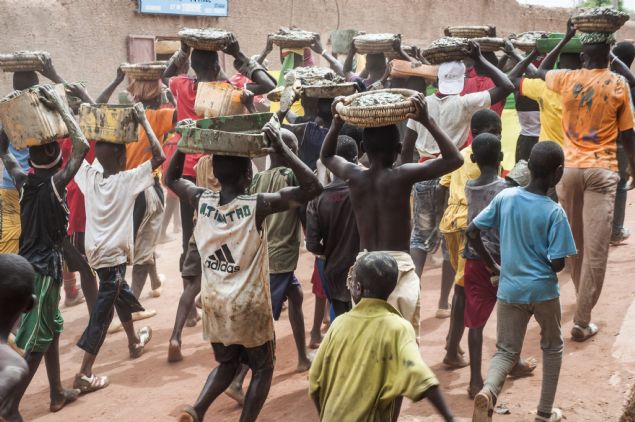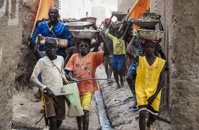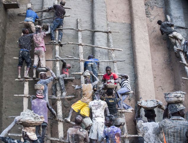Çocuk ve gençlerin nehir yataklarından topladığı çamurlar, kaplarla taşınarak duvarlara sıvayacak ustalara götürülüyor.