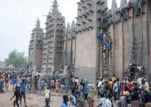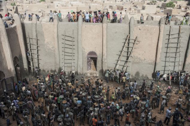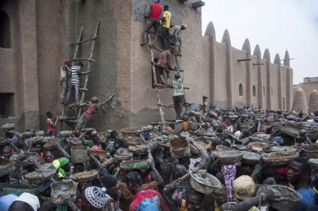 UNESCO'nun Dünya Tarihi Mirası Listesi'ndeki Mali'nin Cenne kentinde bulunan Ulu Cami, her yıl binlerce kişi tarafından çamurla kaplanıyor.