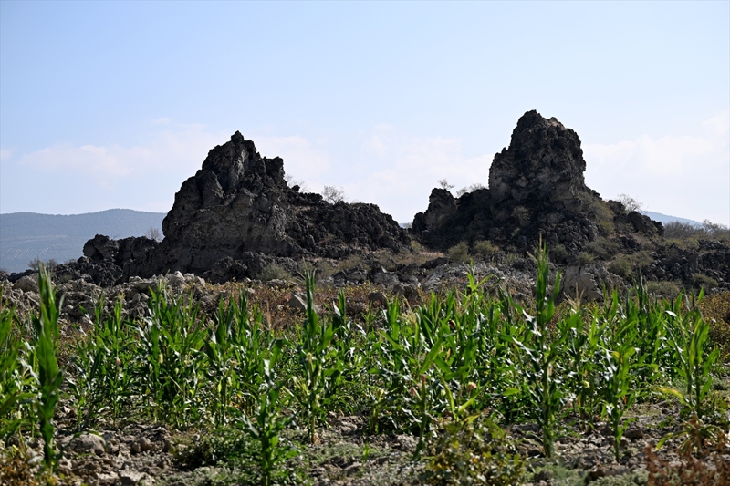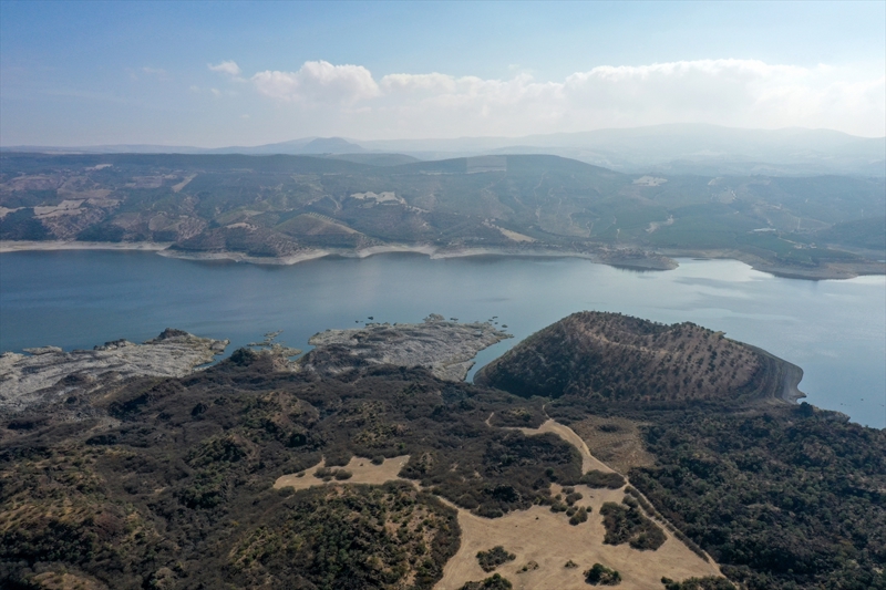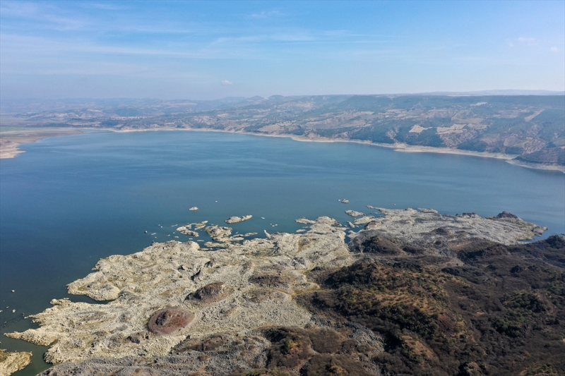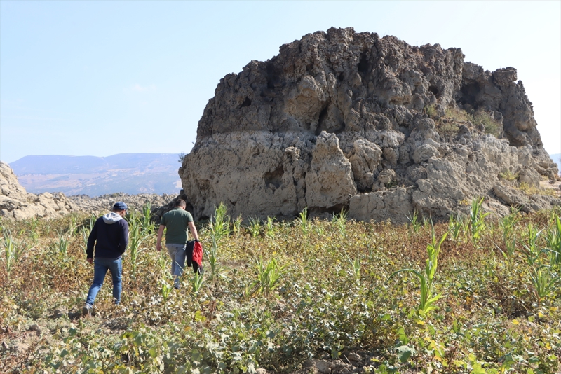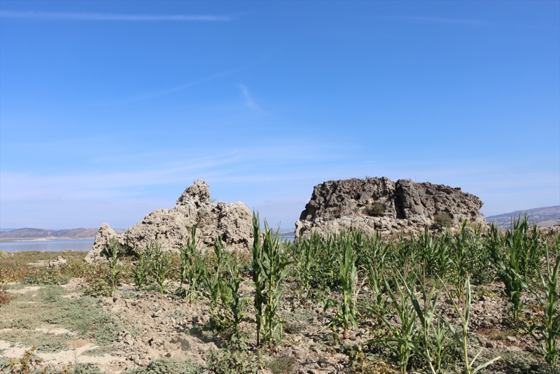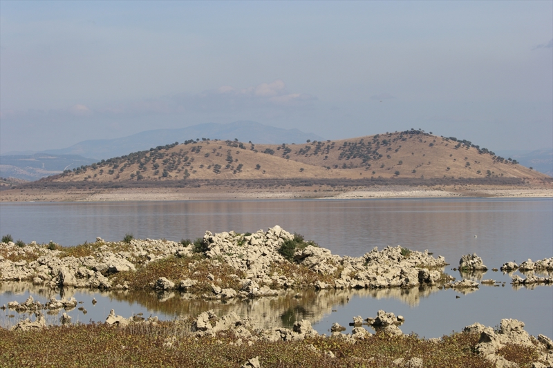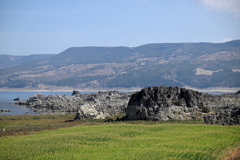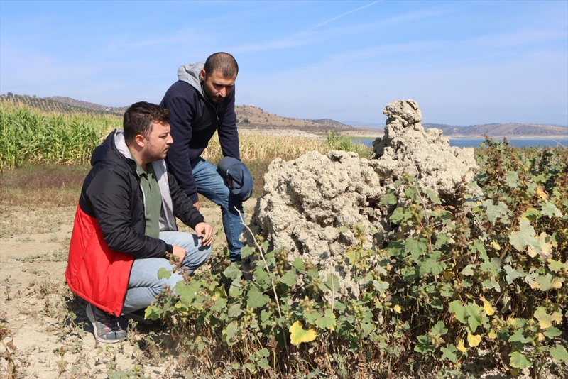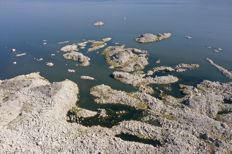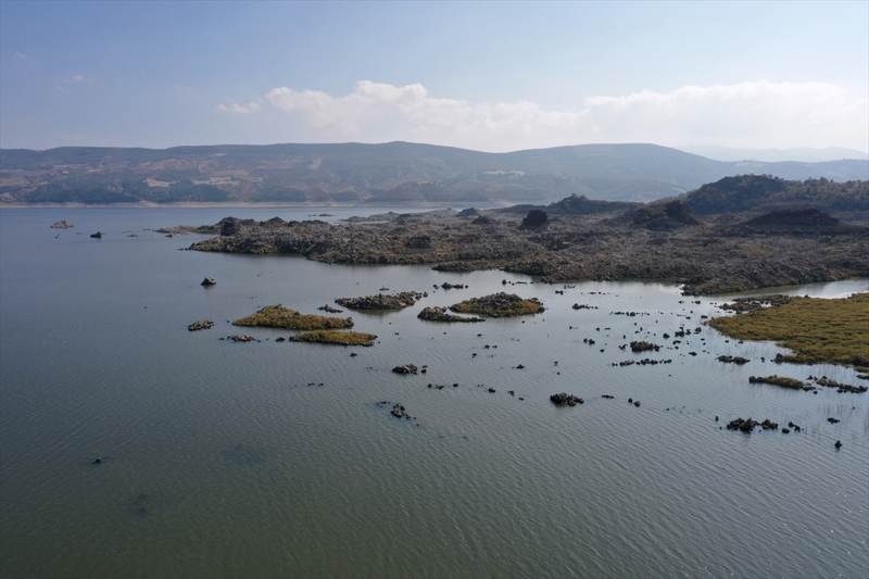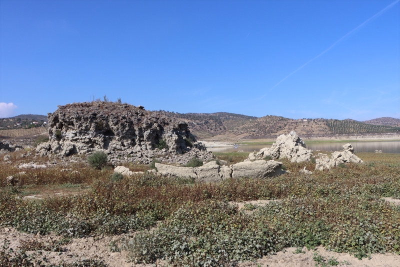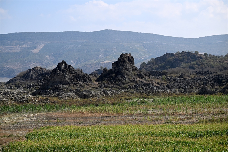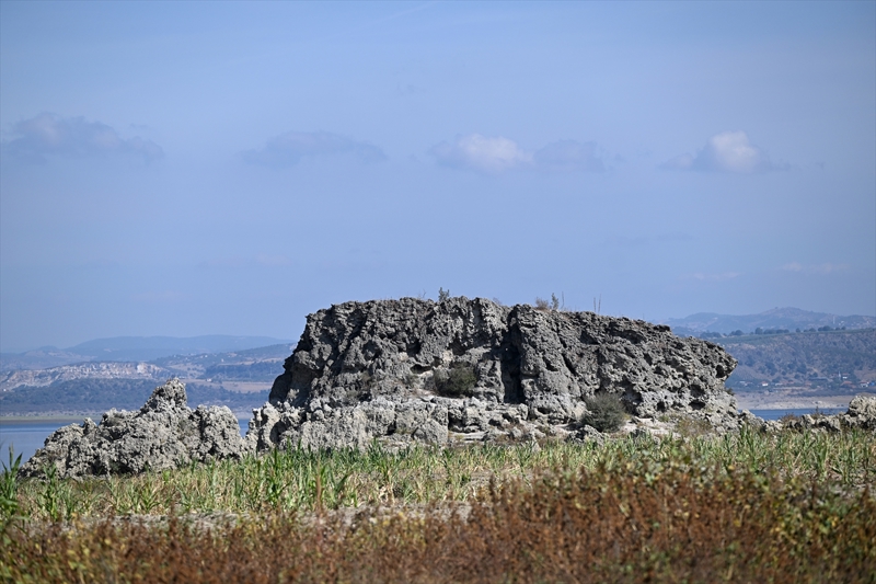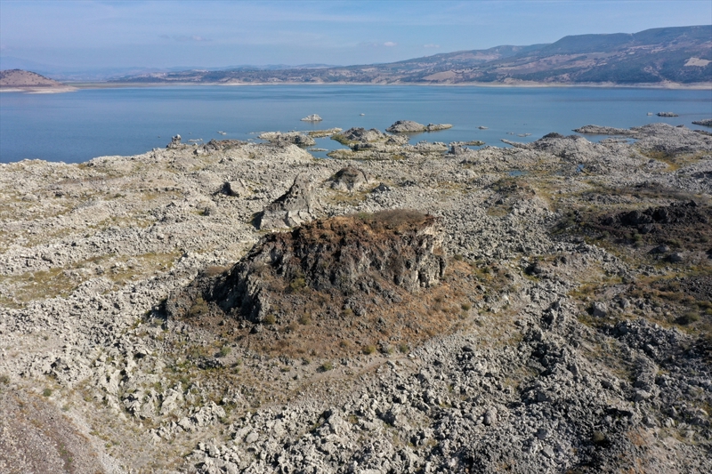 Suların çekilmesiyle baraj kıyısında ilginç görüntünün oluştuğunu dile getiren Karakuzu, 'Koyu renkli lavlar, baraj yapılınca sular altında kaldı. Daha sonra suları çekilen baraj bize bu görüntüyü sundu. Çok ilgi çekici olduğu için meraklıları fotoğraf çekmeye buraya geliyor.' diye konuştu.