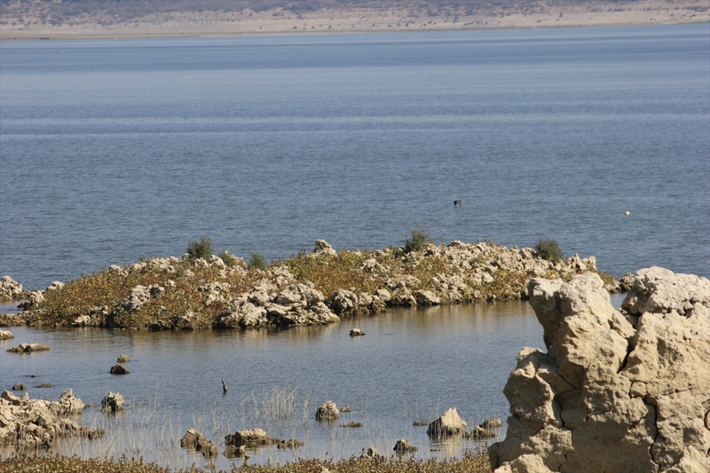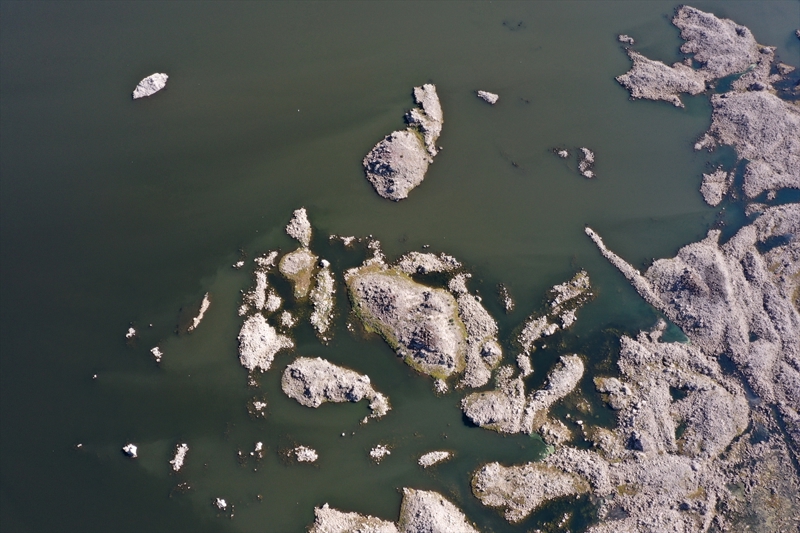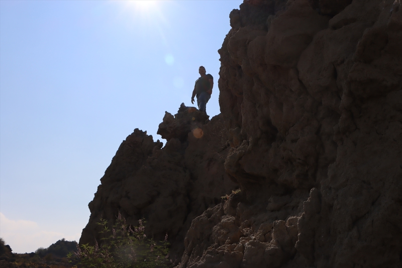 'Şu an Çakallar ve Sindel volkanlarından çıkan akıntının içinde duruyoruz. Baraj çekilince ortaya çıkan görüntünün, kayaçların uzun yıllar su altında kalmasından beyazlaştığını düşünüyoruz. Mevsimsel olarak akarsuların göle taşıdığı sedimentlerin çökelmesiyle ve burada çeşitli mikroorganizmaların ve kabuklu canlıların üzerinde yaşamlar oluşturmasıyla ortaya çıkan bir beyazlık olduğunu düşünüyoruz.'