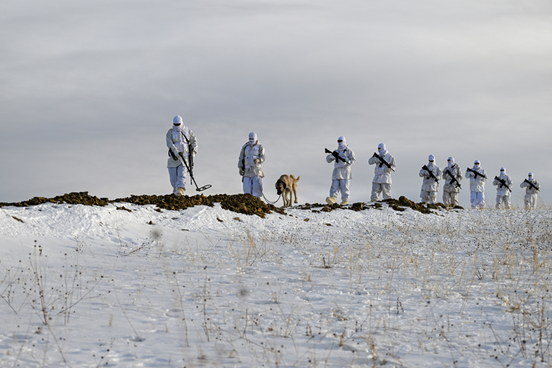 Ankara Jandarma İstihkam Komutanlığına bağlı Özel Mayın Arama ve Temizleme Tabur Komutanlığı ekipleri, duvar örme ve hendek kazma çalışmalarının daha güvenli yürütülebilmesi için sınırdaki mayınları temizliyor.