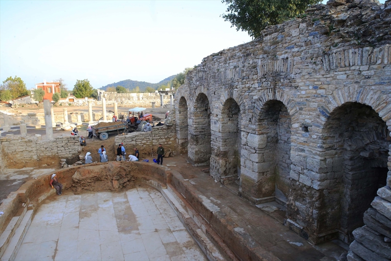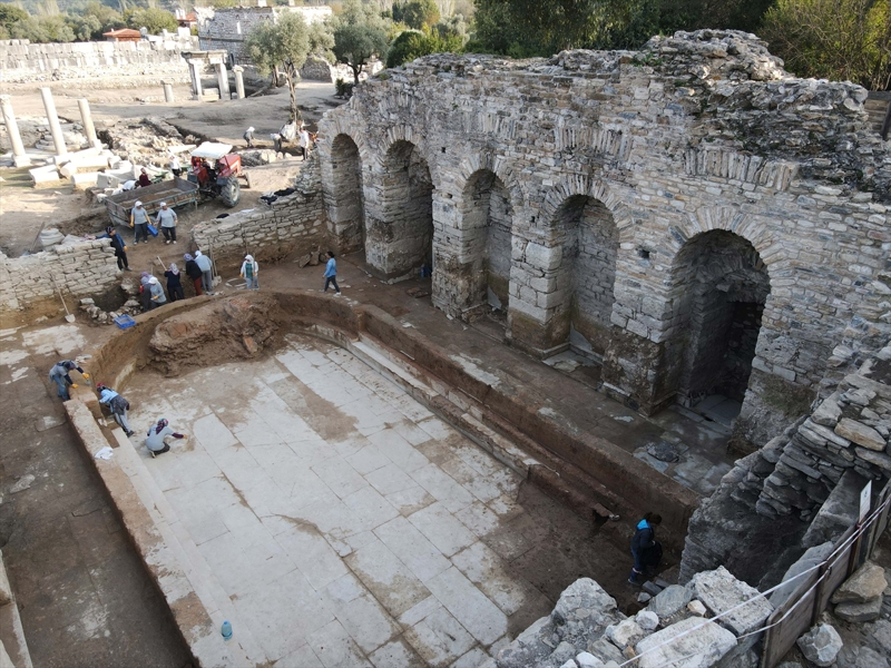 Hamamın frigidarium kısmında, havuzlar ve çevresindeki diğer bölümlerin nişleri ile açığa çıktığını anlatan Söğüt, alanda antik dönemde yıkıldığı şekilde, dolu halinde üst örtüsüyle ilgili malzemeler bulduklarını, hamamın jimnastik ve spor bölümleri olan palestranın güney portikteki (üstü örtülü, önü sütunlu açık galeri) çalışmalarına ise devam ettiklerini ifade etti.