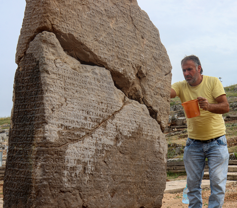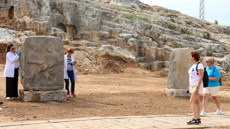 Burada yapılan restorasyon çalışmalarının ardından tarihi eserlerin ayağa kaldırıldığını ifade eden Alkan, 'Stelleri ayağa kaldırarak kaidelerine yerleştirdik. Ziyaretçilerimizin beğenisine sunuyoruz.' dedi.
