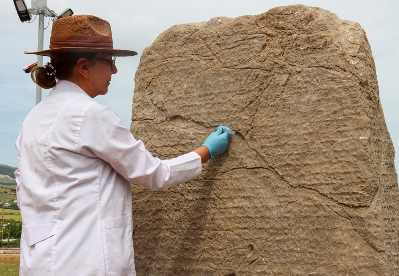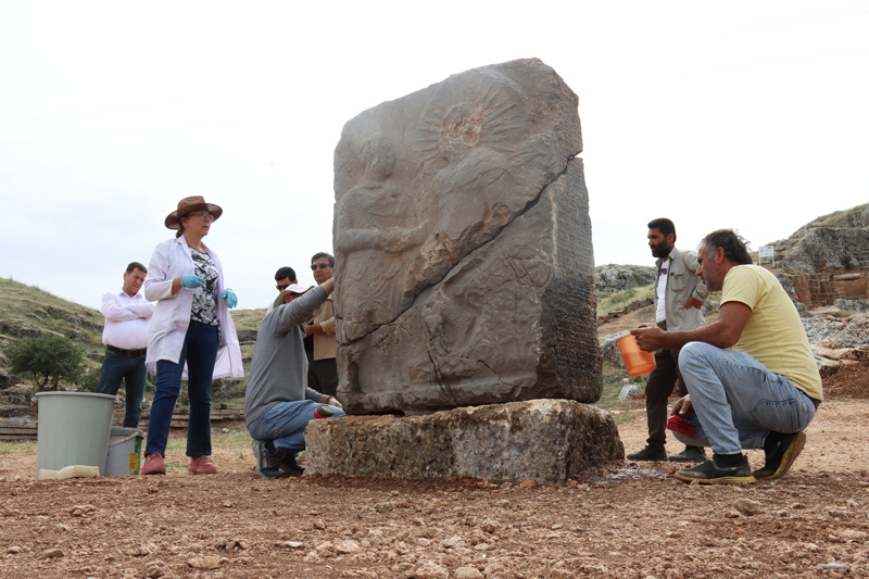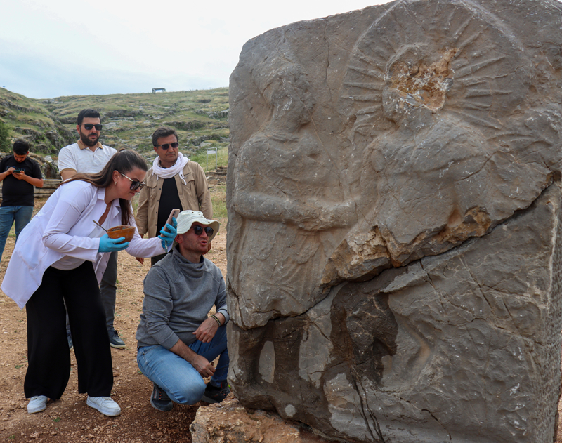 Ekipler, alanda tokalaşma sahnesinin olduğu kabartma ile yazıtların yer aldığı steller bulmuştu.