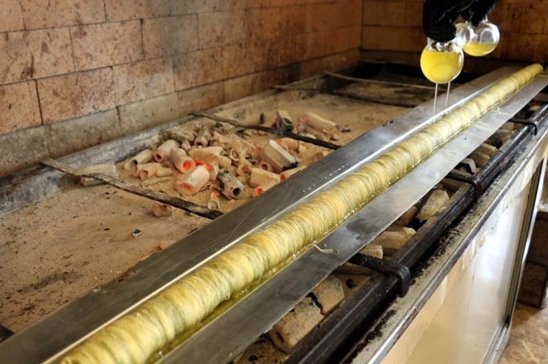 Yemekleriyle adete gastronominin başkenti olan Gaziantep'te bir baklava ve kadayıf ustası, 2 metrelik boruda kadayıf pişirdi. Mangal ateşi ile pişirilen kadayıf, üzerine sarılan Antep fıstığı ezmesiyle damakta unutulmaz lezzet bırakıyor.