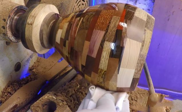 Ahşaptan adeta sanat eseri yaratan bir kimse, 30 farklı ağaç türünü birleştirerek muhteşem bir vazo tasarladı.