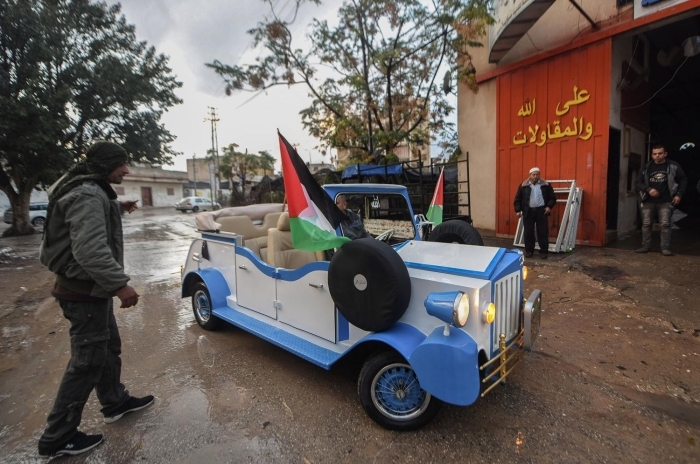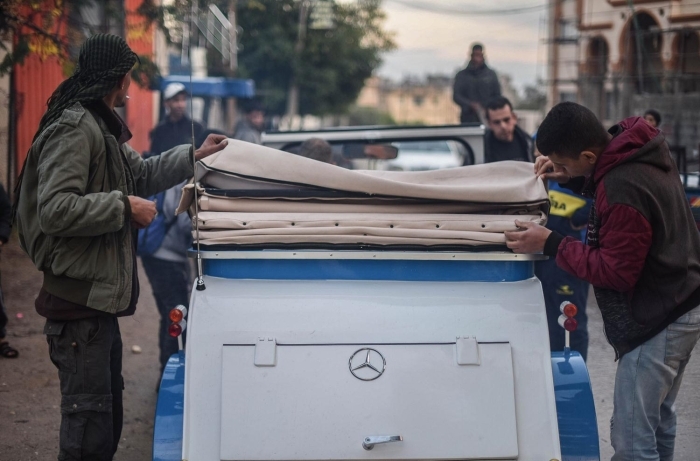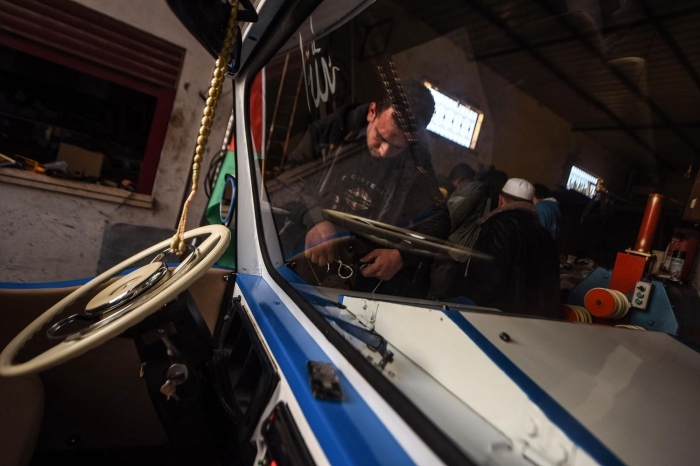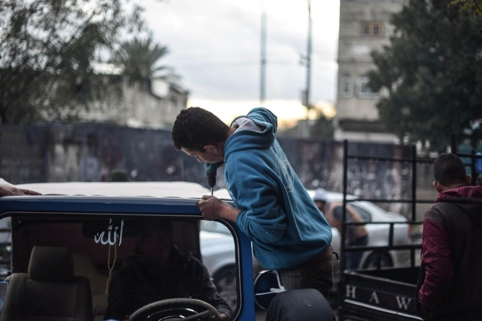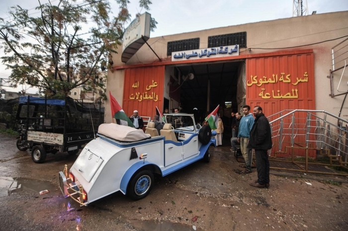 Demirci ustası Baraka, orijinali tasarımı taklit ettiği aracı, oğullarının da desteğiyle iş yerinde tamamlayarak, Gazze sokaklarında görücüye çıkardı.