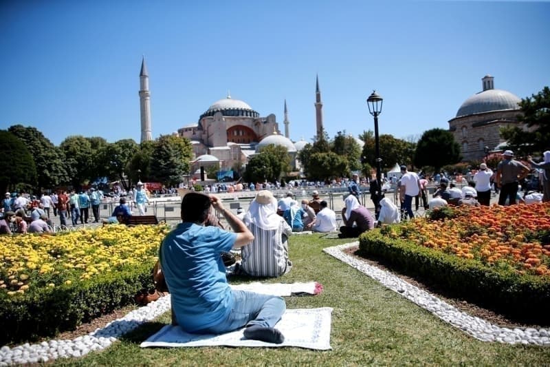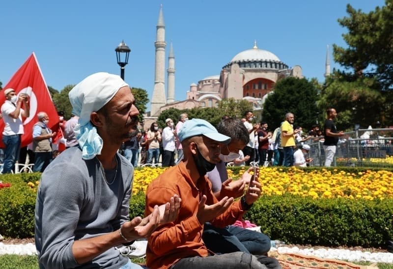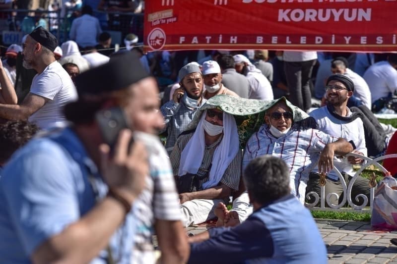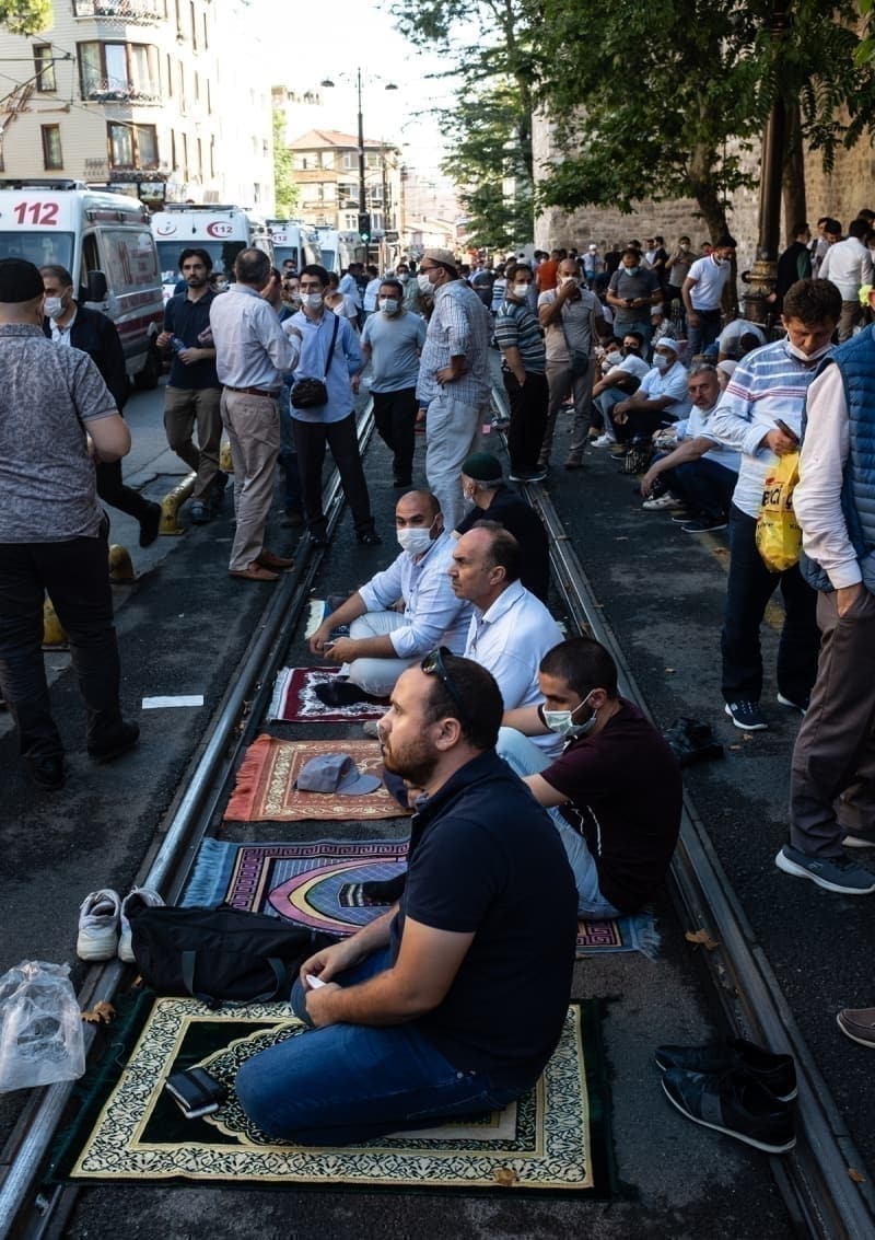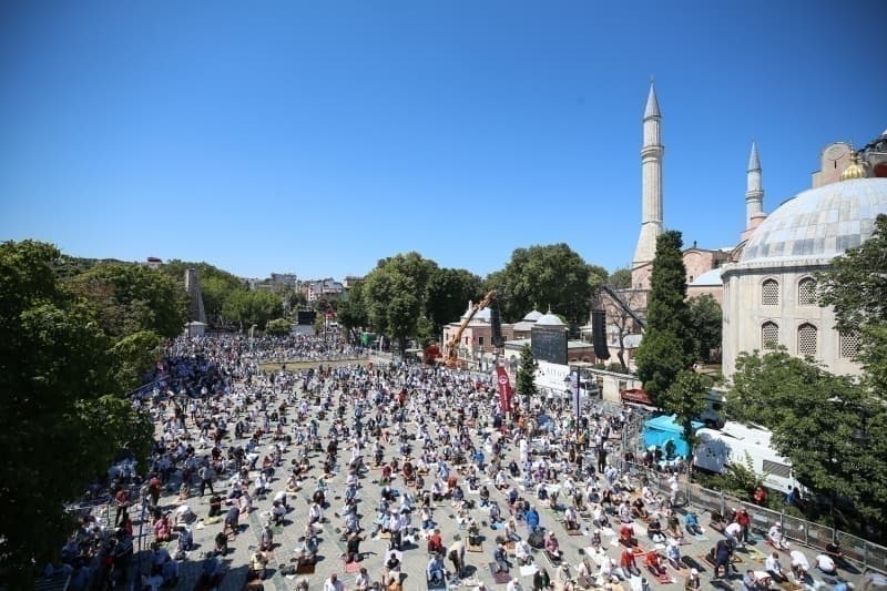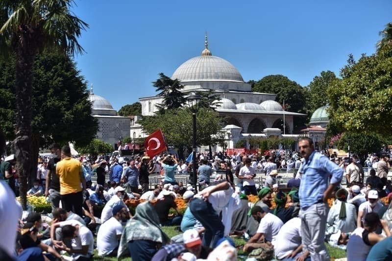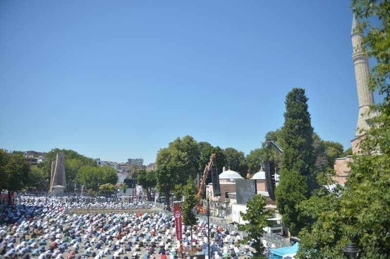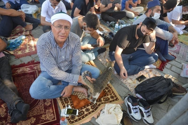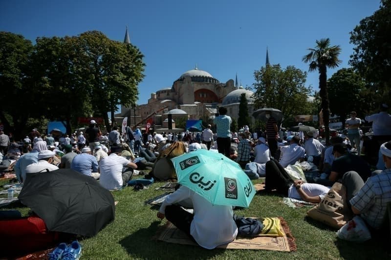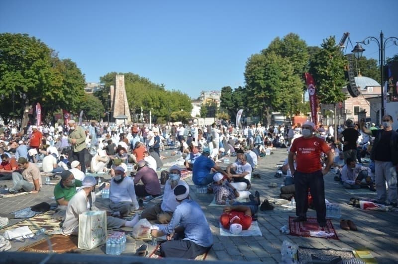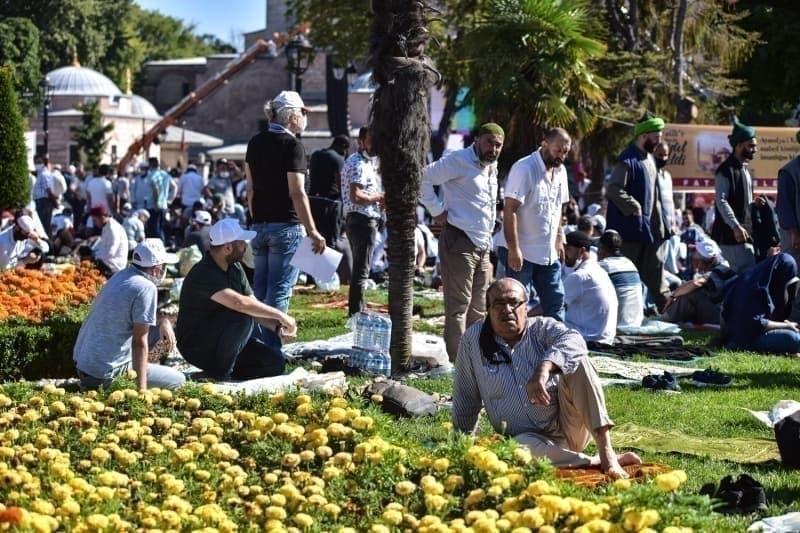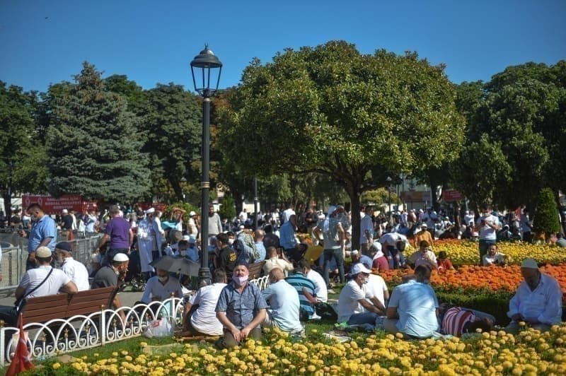 Ayasofya'ya yakın noktalara gelenler ise seccadelerini yerlere sererek namaz vaktinin gelmesini beklemeye başladı.