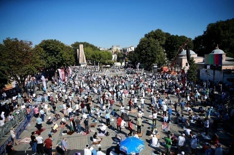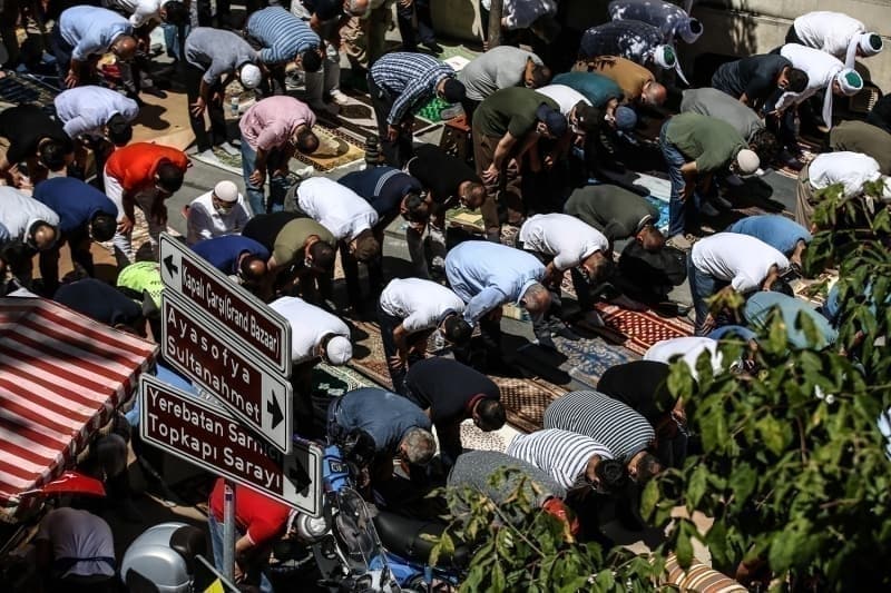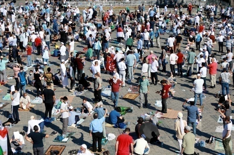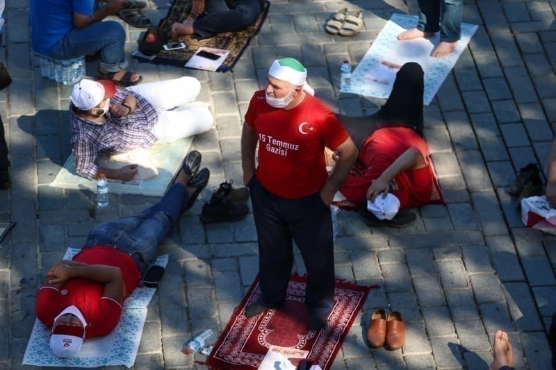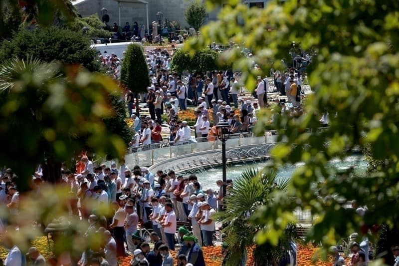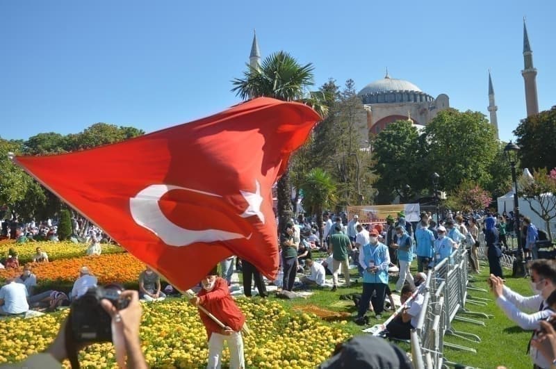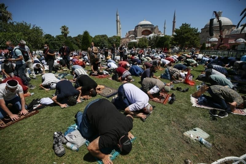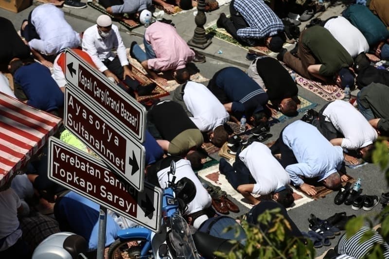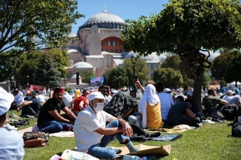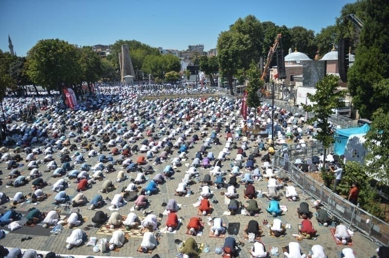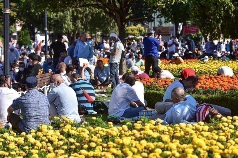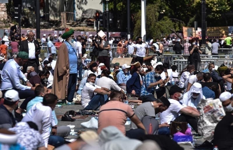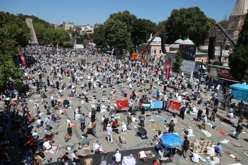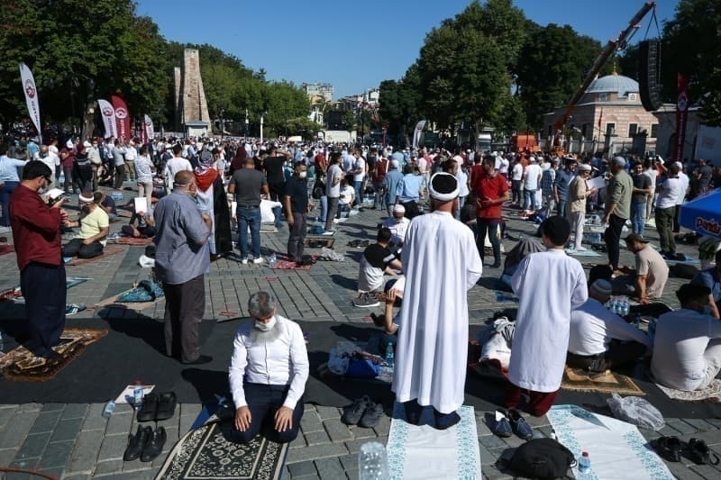 Ayasofya'ya yakın noktalara gelenler ise seccadelerini yerlere sererek namaz vaktinin gelmesini beklemeye başladı.