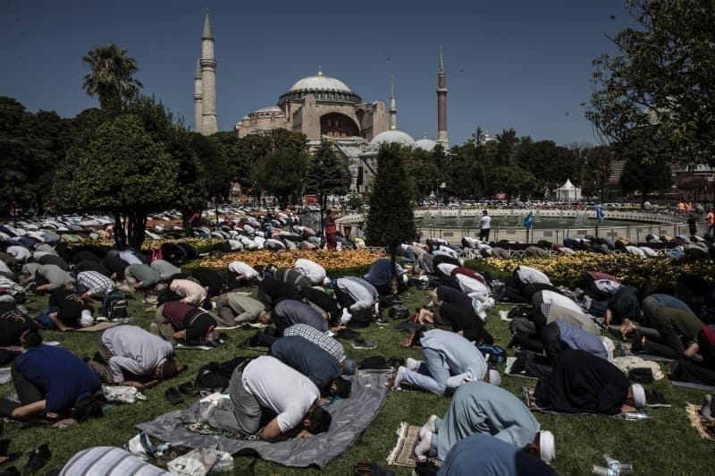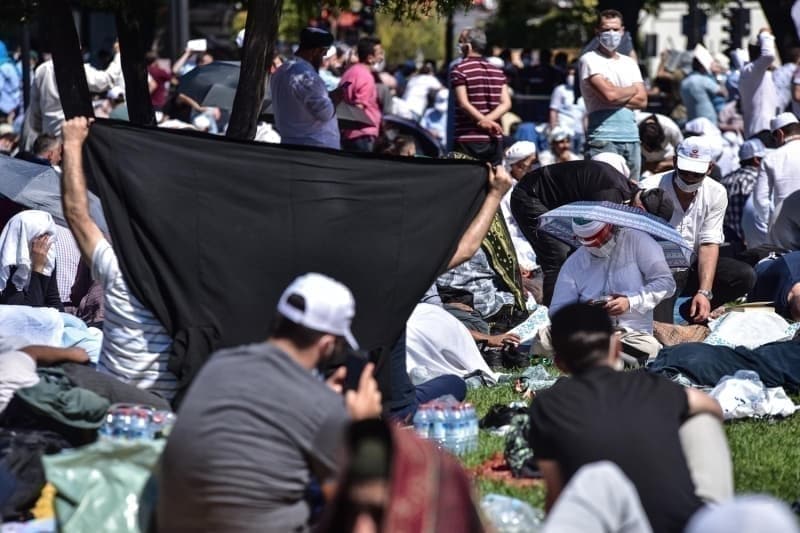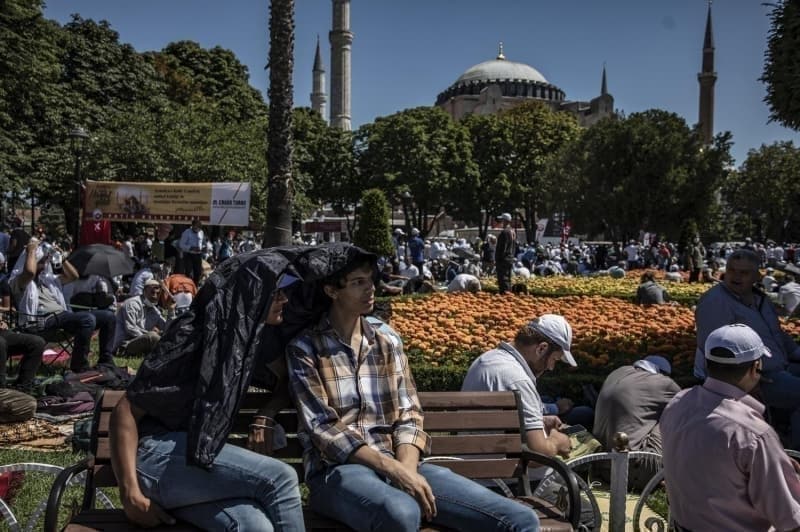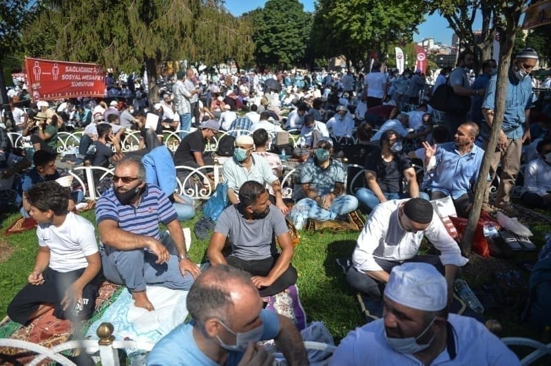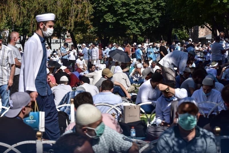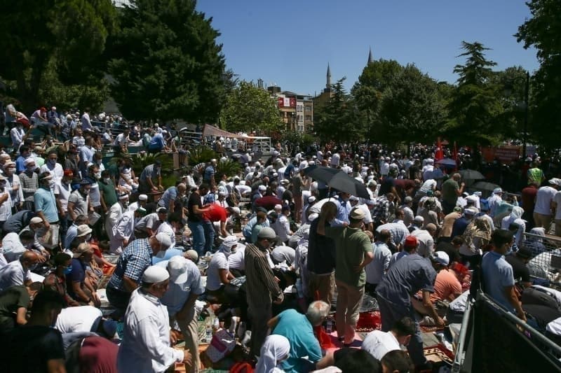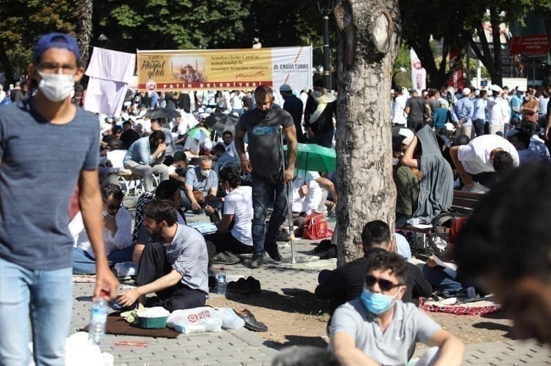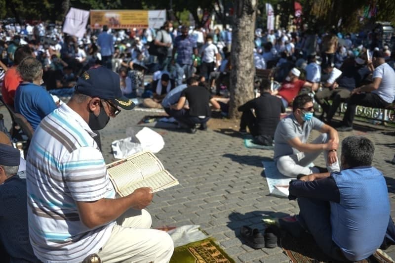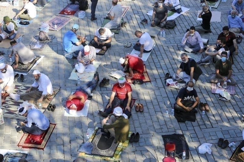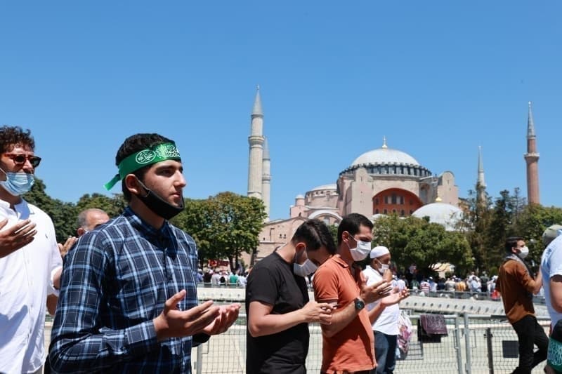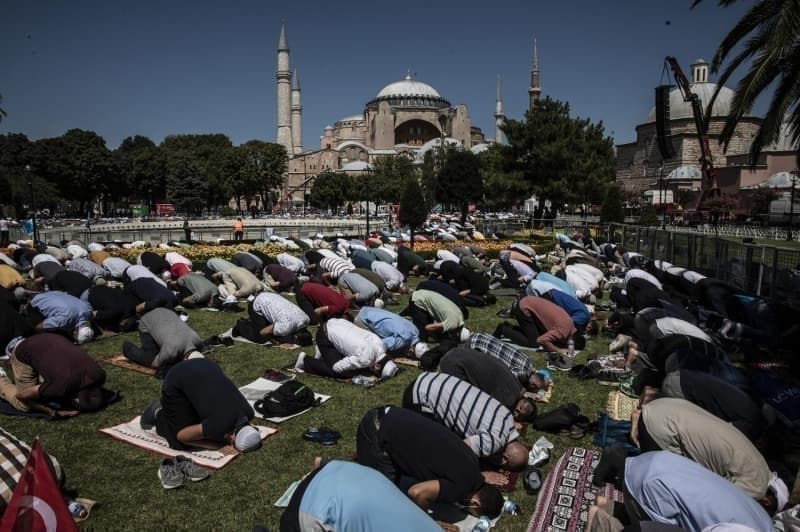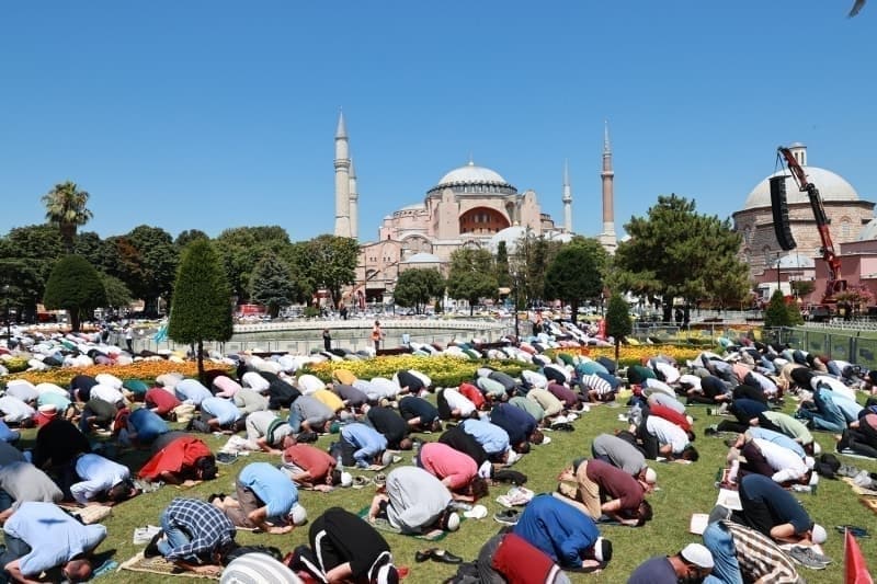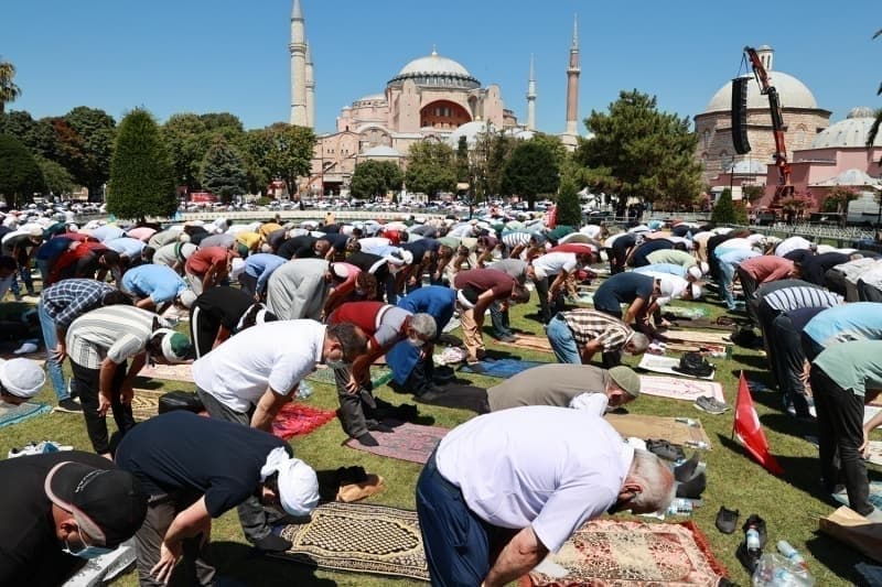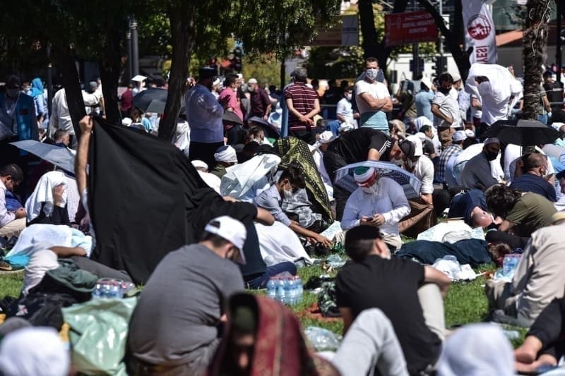Ayasofya'ya yakın noktalara gelenler ise seccadelerini yerlere sererek namaz vaktinin gelmesini beklemeye başladı.