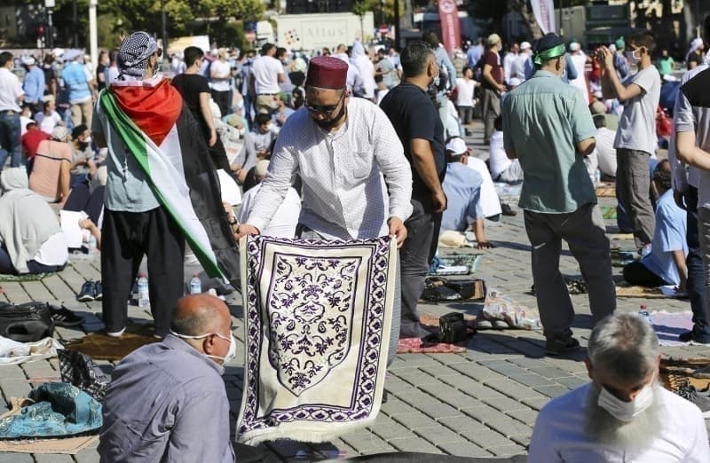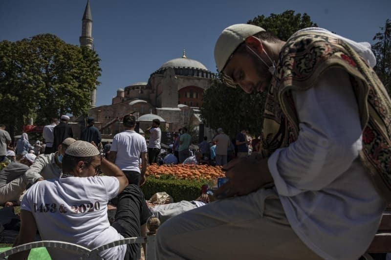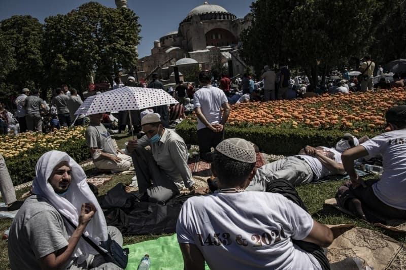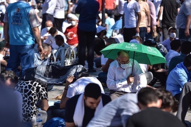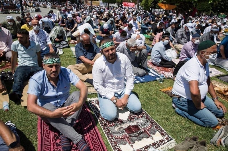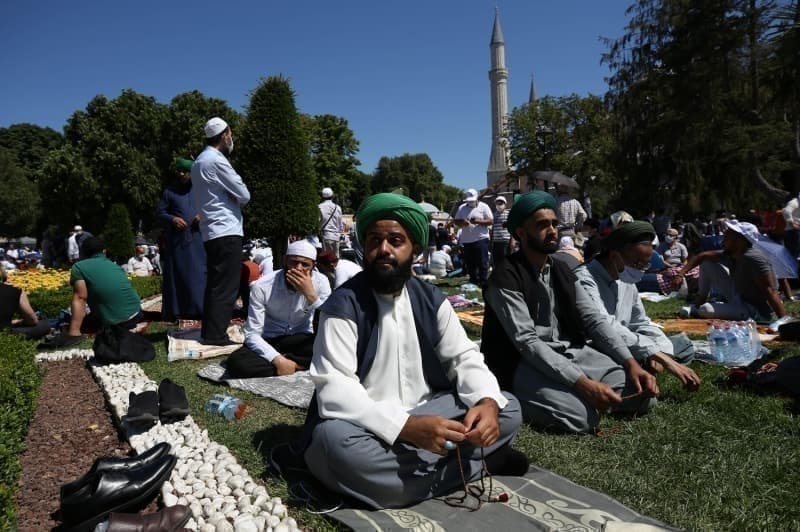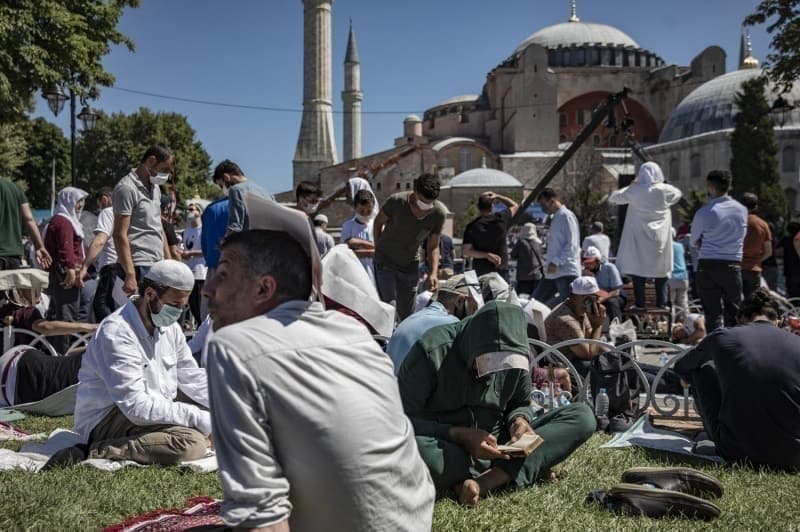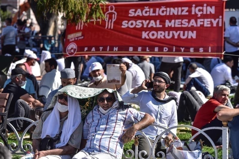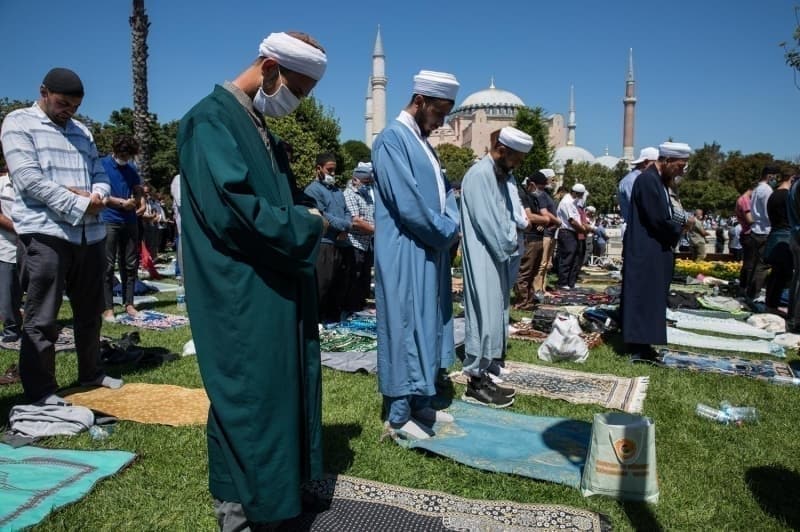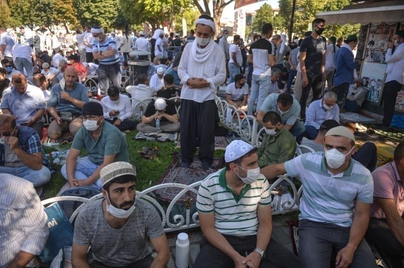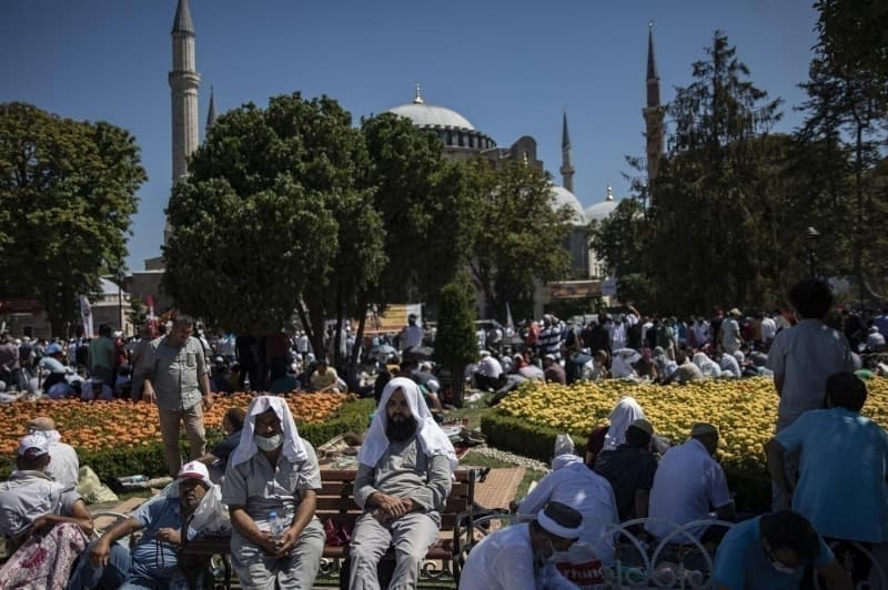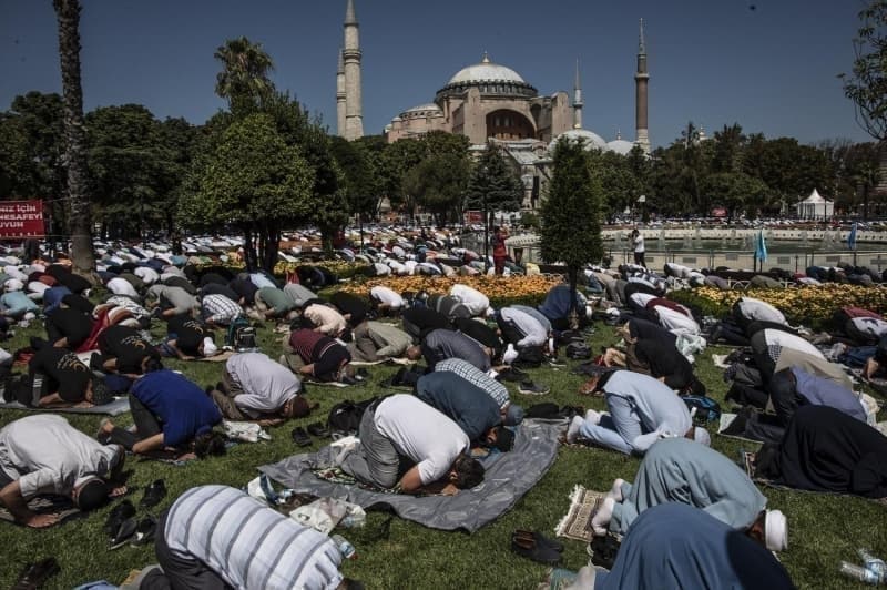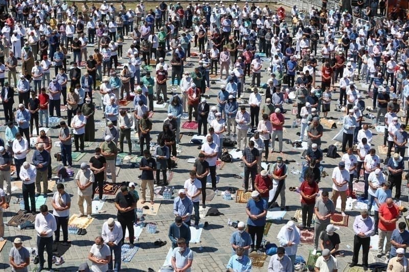 Ayasofya'ya yakın noktalara gelenler ise seccadelerini yerlere sererek namaz vaktinin gelmesini beklemeye başladı.