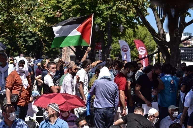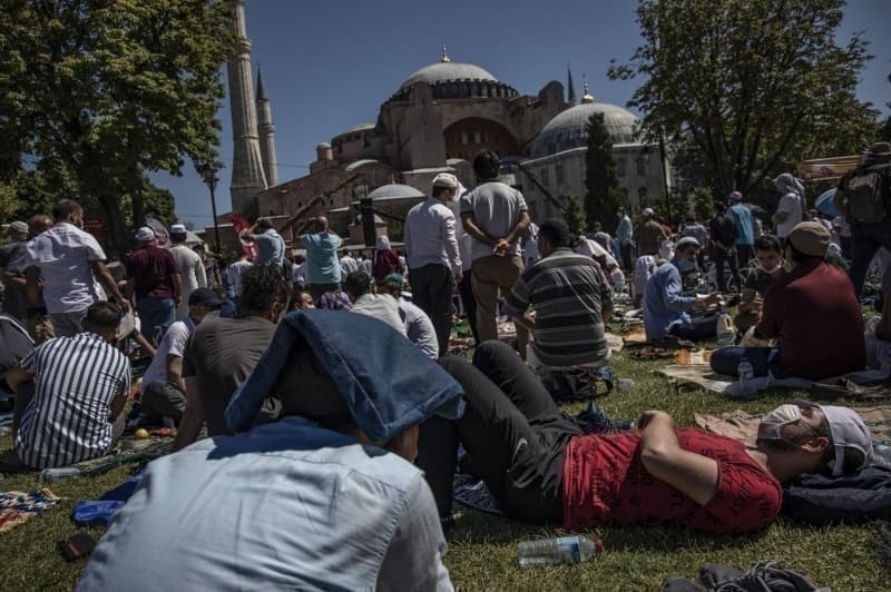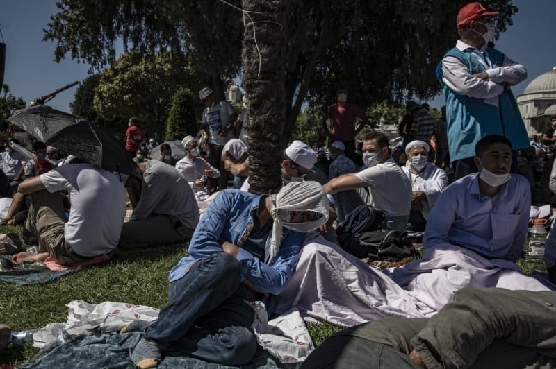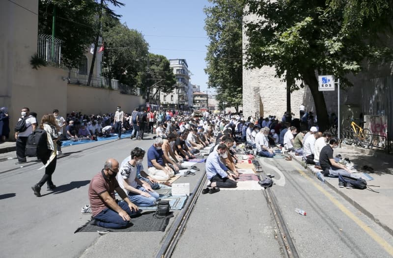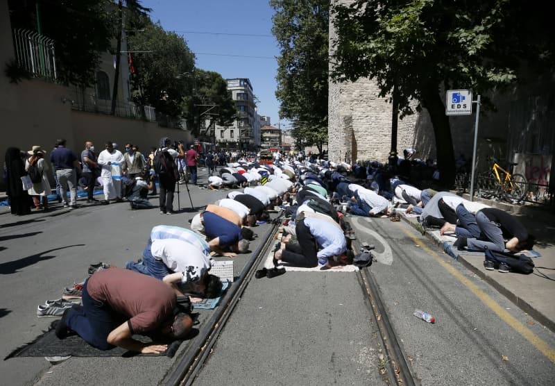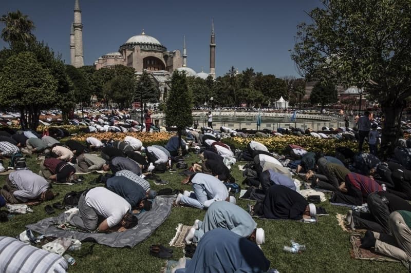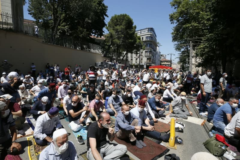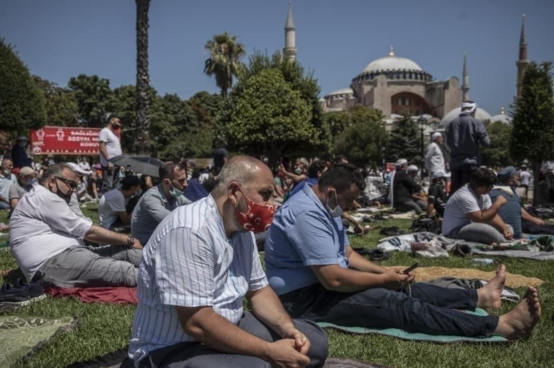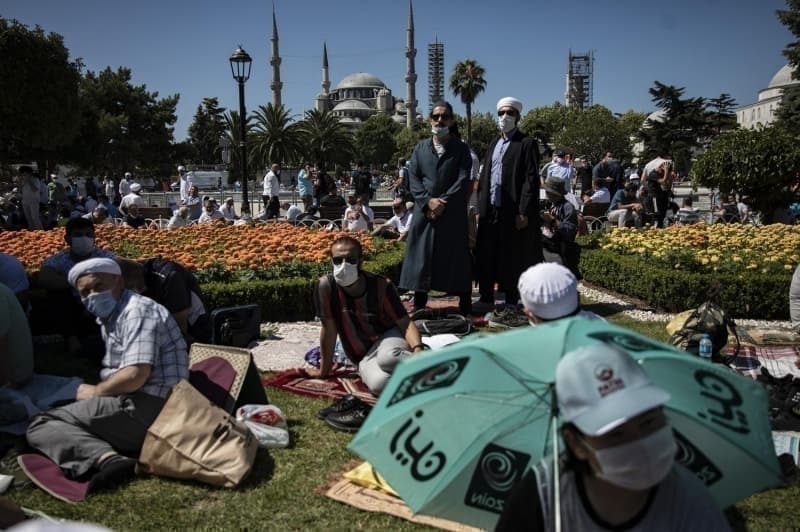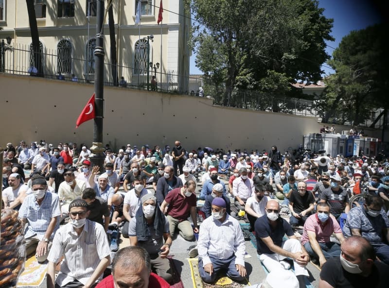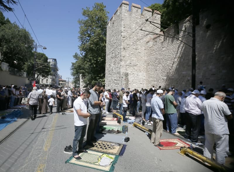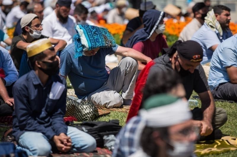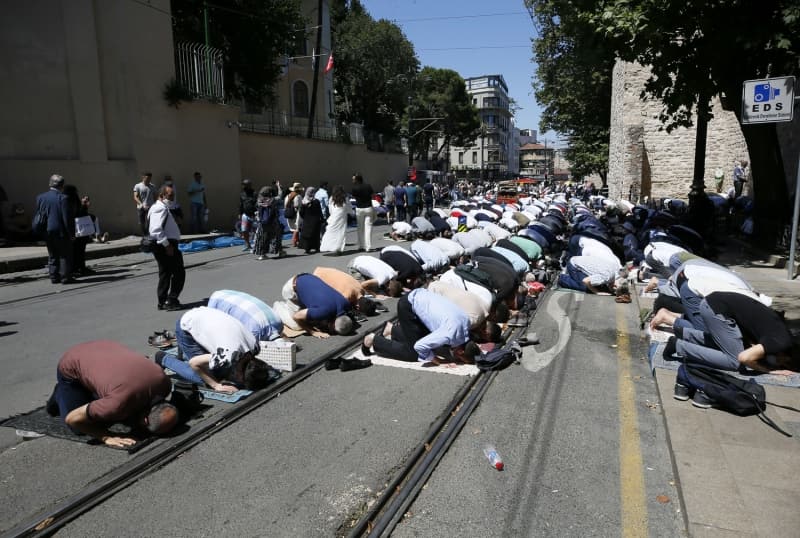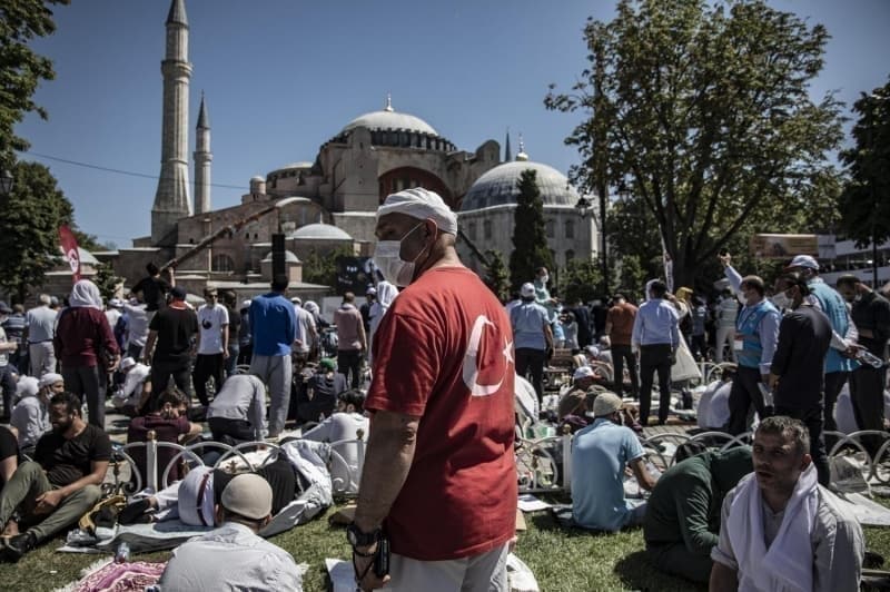 Ayasofya'ya yakın noktalara gelenler ise seccadelerini yerlere sererek namaz vaktinin gelmesini beklemeye başladı.