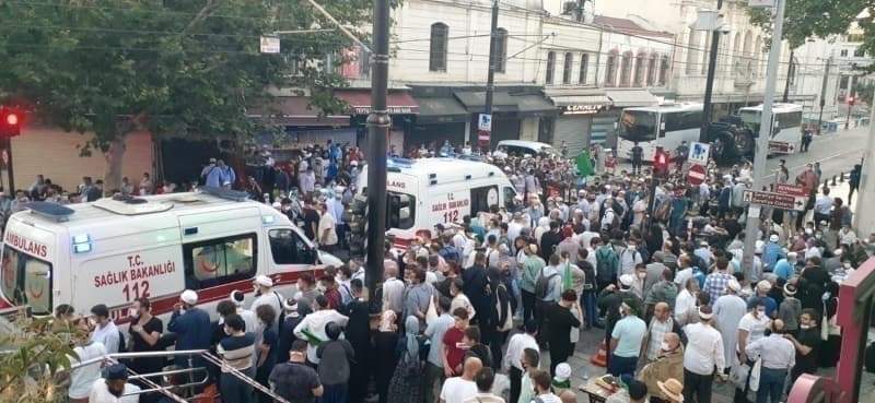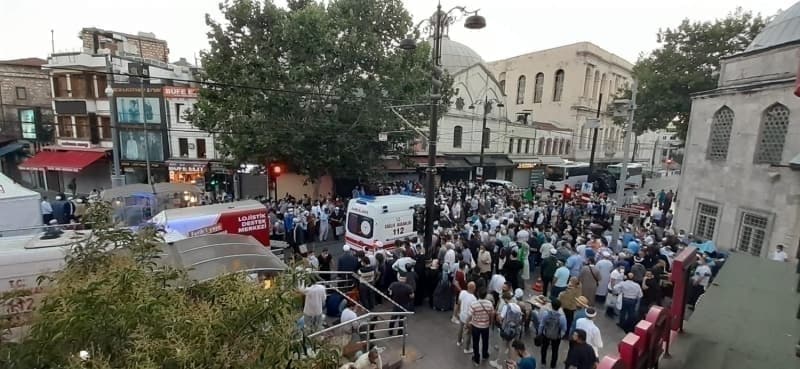 Cami çevresindeki kalabalık her geçen dakika artıyor.
