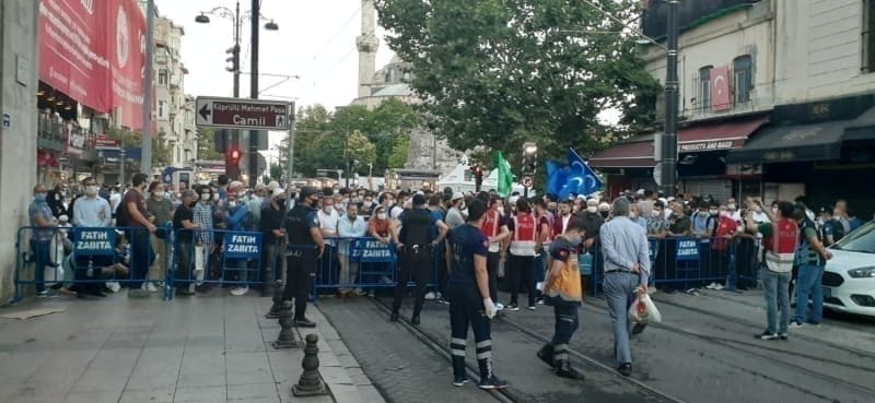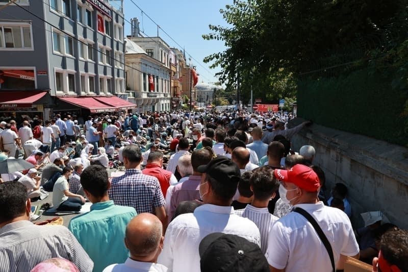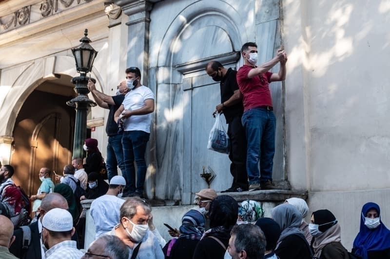 Ayasofya-i Kebir Cami-i Şerifi'nin daha yakınında olmak isteyen vatandaşlar ise birbirleriyle yarıştı.
