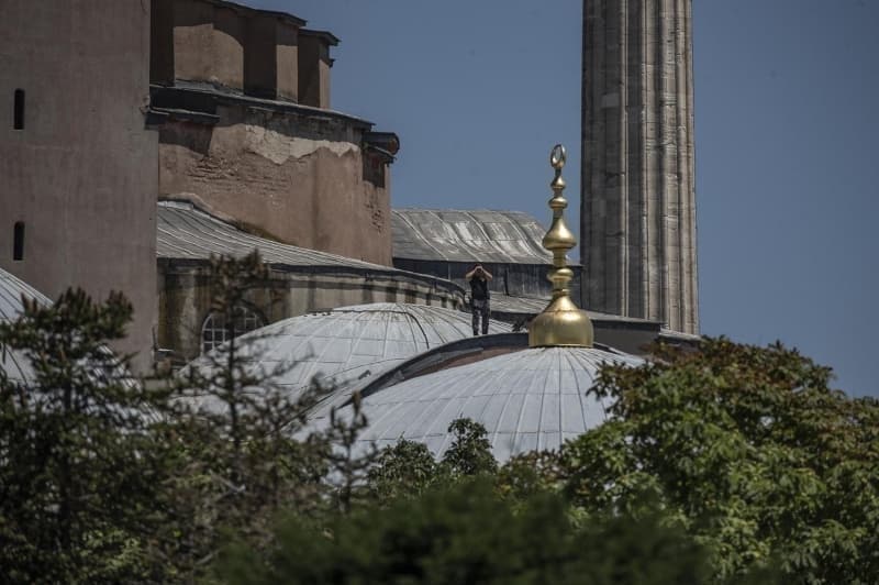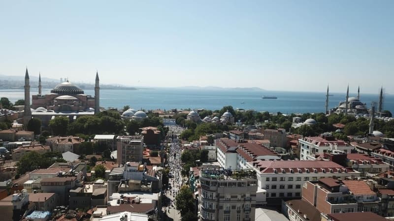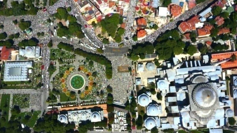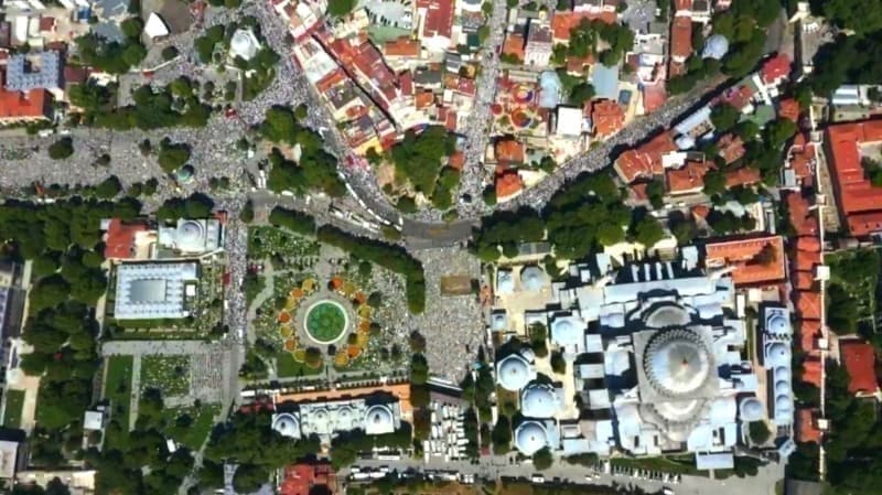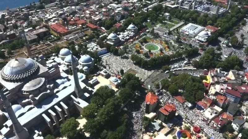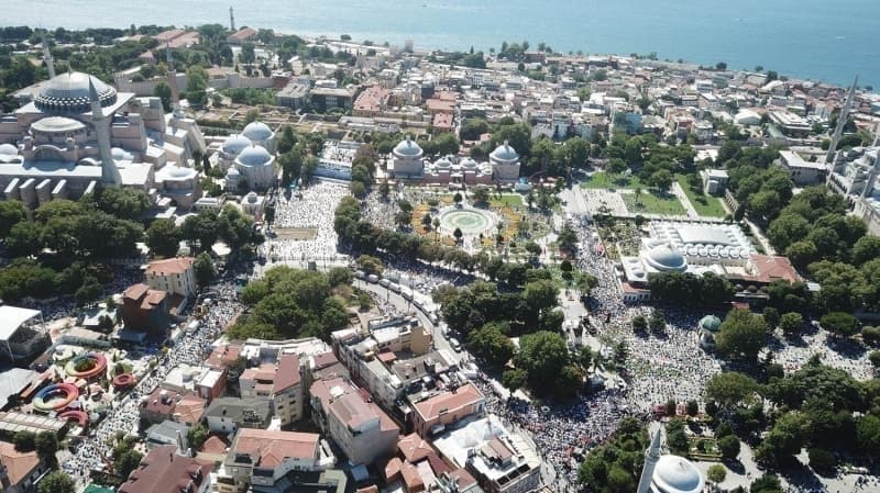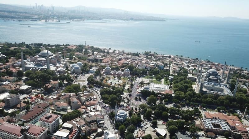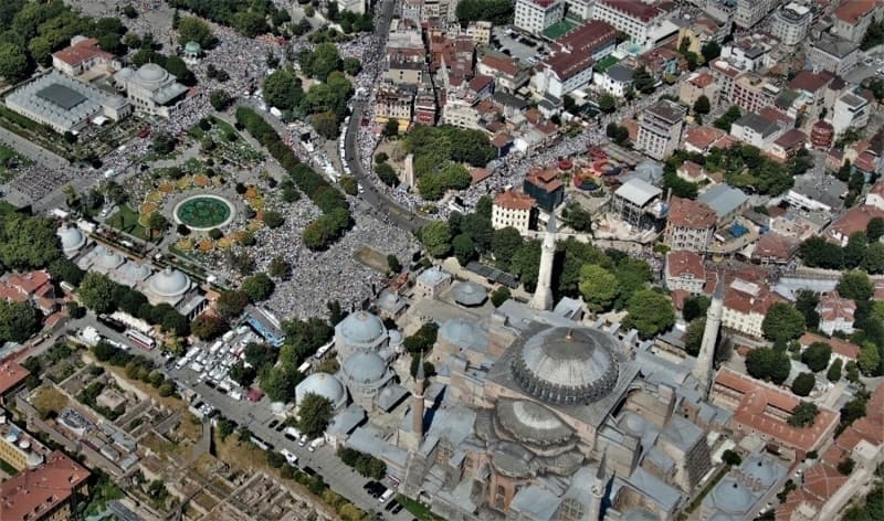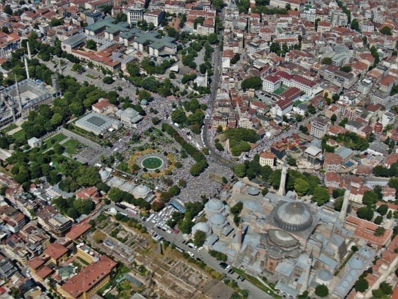 Ayasofya Camii'nin çevresindeki hazırlıklar drone ile görüntülendi.