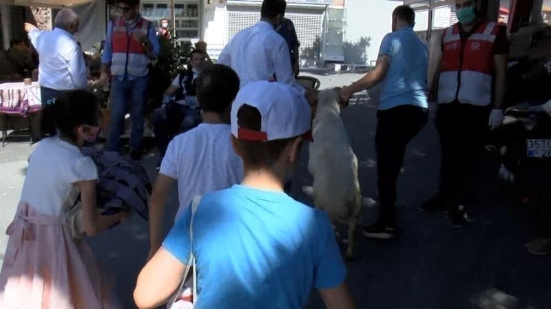 Ayasofya-i Kebir Cami-i Şerifi'nde 86 yıl sonra kılınacak ilk Cuma namazı için gelen bir vatandaş açılışta kesmek için kurbanlık koç getirdi.