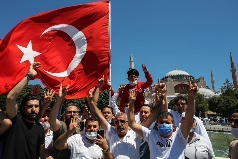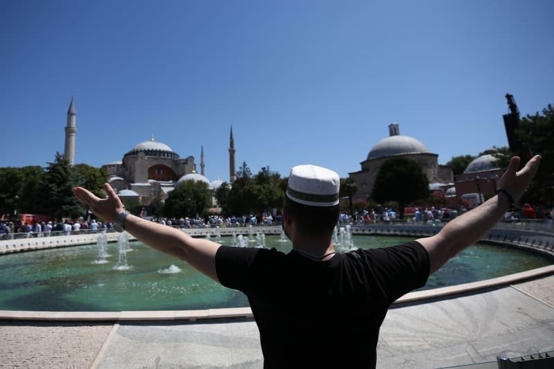 Ayasofya Camii'nde kılınacak ilk namaz için dün gece Samsun'dan geldiğini söyleyen 82 yaşındaki Mustafa Güdül, 'Valla heyecanlıyım. Ben gençliğimde zincirler kırılsın Ayasofya açılsın diye mitingler düzenleyen insanlardan biriyim. Bu heyecanı yaşıyorum şimdi. İnşallah Cuma namazını burada kılacağız. Çok heyecanlıyım gerçekten. Allah bugün nasip etti. Bugün zincirler kırıldı' şeklinde konuştu.