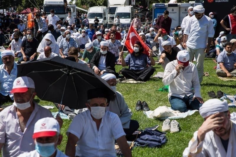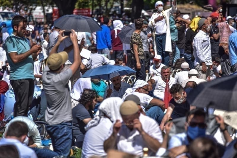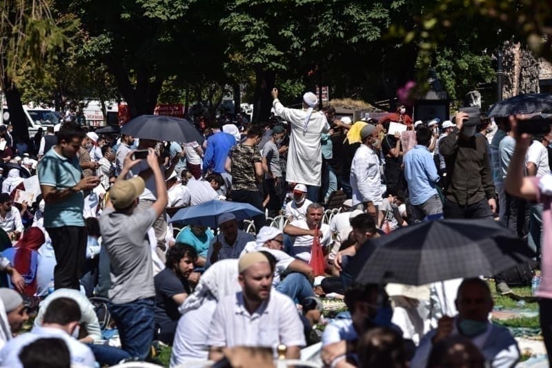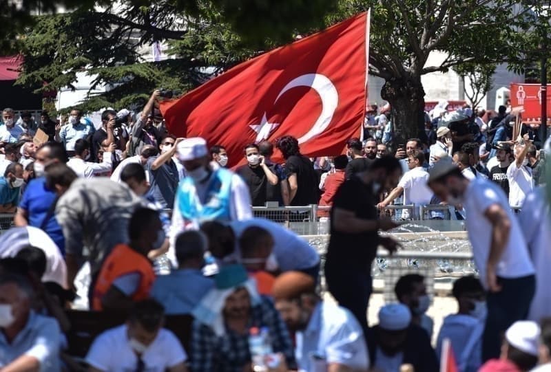 Gece saatlerinde gelerek beklemeye başlayan vatandaşların Gülhane Parkı'nın önündeki kontrol noktasına giriş yapmasına izin verilmesiyle vatandaşlar koşarak Ayasofya'ya gitti.
